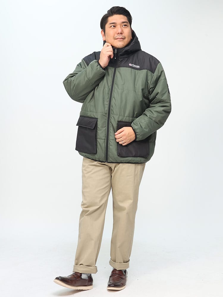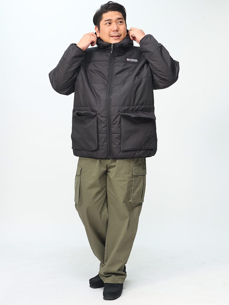 2023AW 新作のOUTDOOR PRODUCTS アウトドアプロダクツ ショートアウターです。OUTDOOR PRODUCTSの中綿ジャケットは、水をはじきやすい撥水加工が施されており、雨や雪の日でも快適にお洒落を楽しめます。フードの内側には暖かいボア素材が使われておりカッコいいですよね。フルジップデザインで、着脱が簡単なのでアウトドアだけでなく日常使いにも適していますので通勤通学にもピッタリ。インナーを選ばないので何にでも合わせやすく、ヘビロテ間違いなしです。大きいサイズの3L 4L 5L 6Lサイズをご用意!耐久性と機能性を備えた快適な着心地のジャケットなのでプレゼントにも最適ですよ。