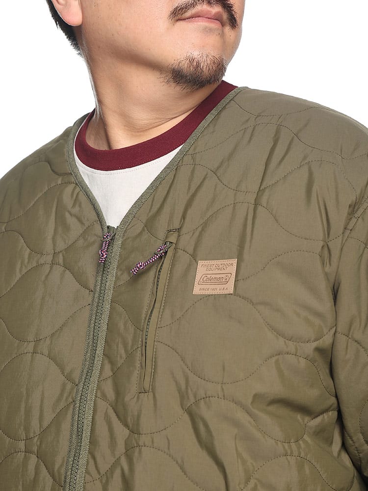Colemanのナイロンワッシャーキルトノーカラージャケットは、軽量かつ高い保温性を持つアウトドア向けのアイテムです。ナイロンワッシャーの素材は耐久性に優れ、キルトデザインが風から体を守ります。ノーカラーのスタイルはモダンで洗練された雰囲気を持ち、都会的なシチュエーションでも違和感なく着用できます。Colemanの伝統的な機能性とデザインが融合したこのジャケットは、アウトドア活動はもちろん、日常のコーディネートにも最適な一着です。