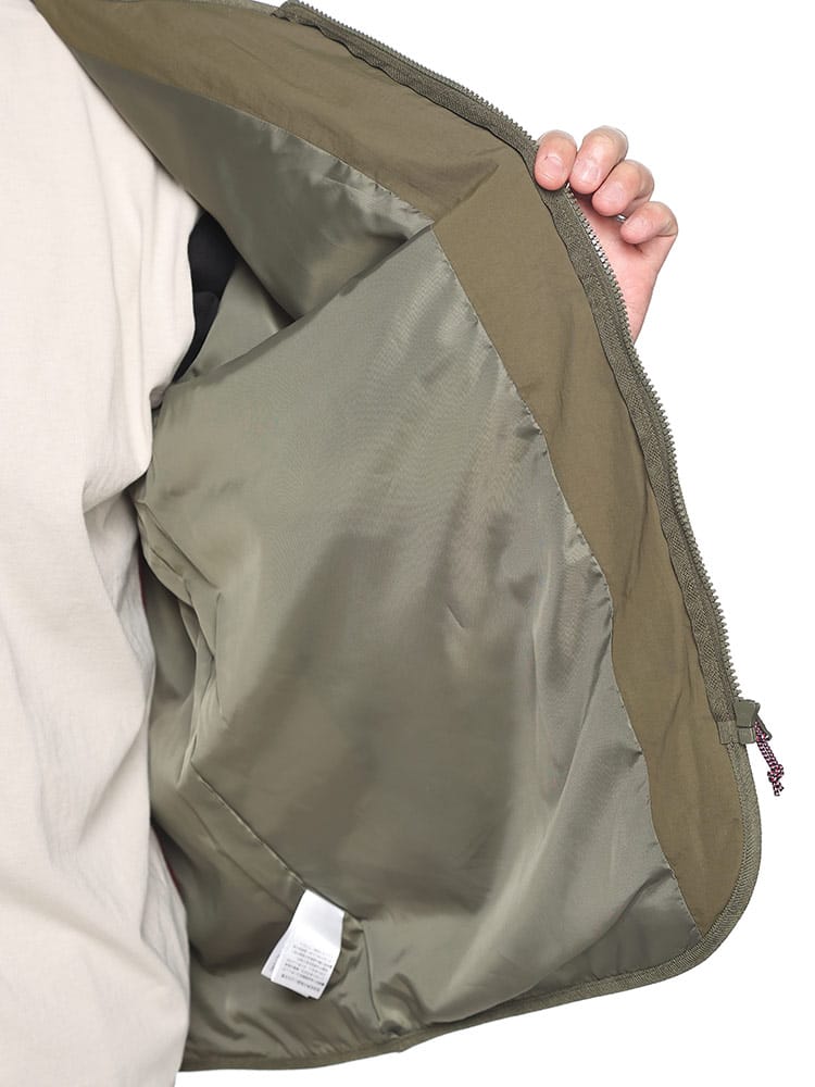 素材 :[表地]ナイロン100% [中綿]ポリエステル100% [裏地]ポリエステル100% [切り替え]ポリエステル95% ポリウレタン5% [リブ部分]ポリエステル98% ポリウレタン2% [ワッペン]合成皮革