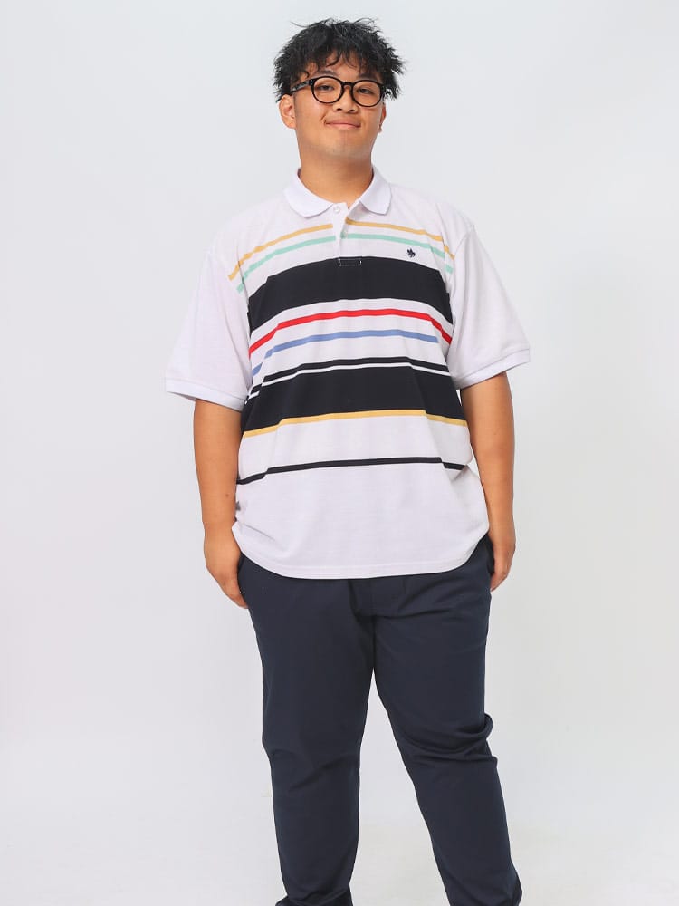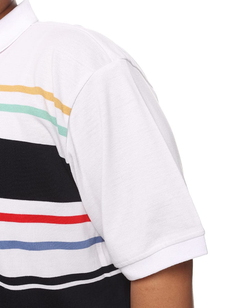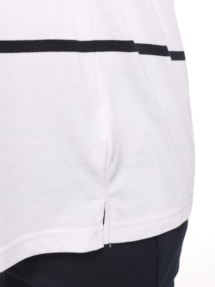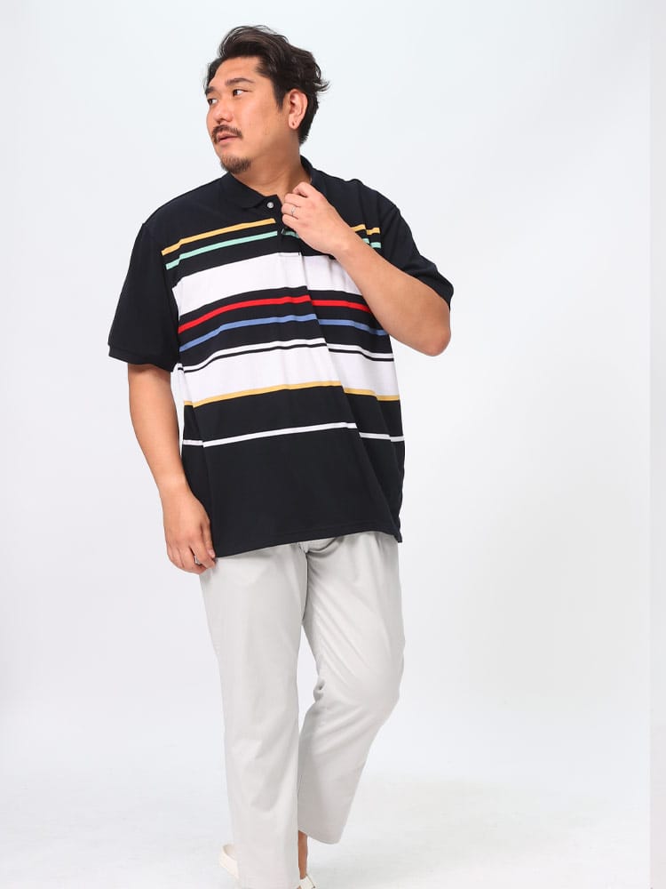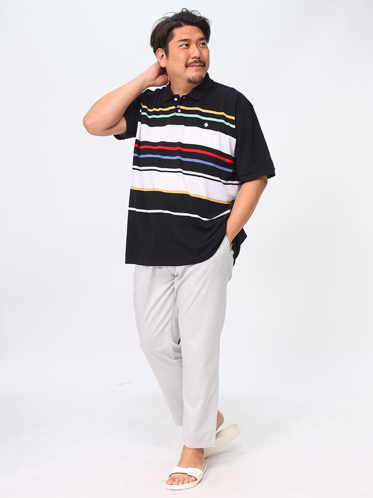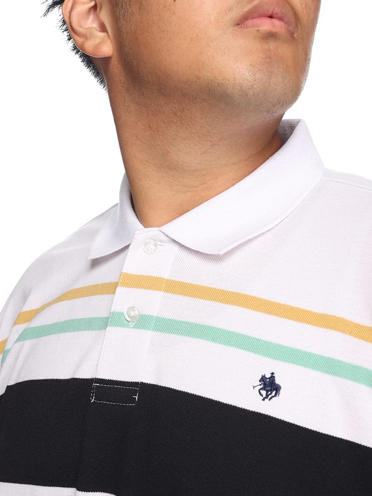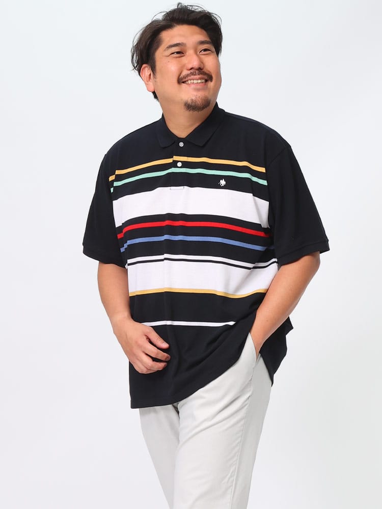 POLO BCSのパネルボーダー ロゴ刺繍 半袖ポロシャツは、鮮やかなパネルボーダーデザインが特徴です。胸元には目を引くロゴ刺繍が施され、洗練された外観を演出します。このシャツはスタイリッシュでありながら快適な着心地を提供し、カジュアルながらも印象的なスタイルを実現します。