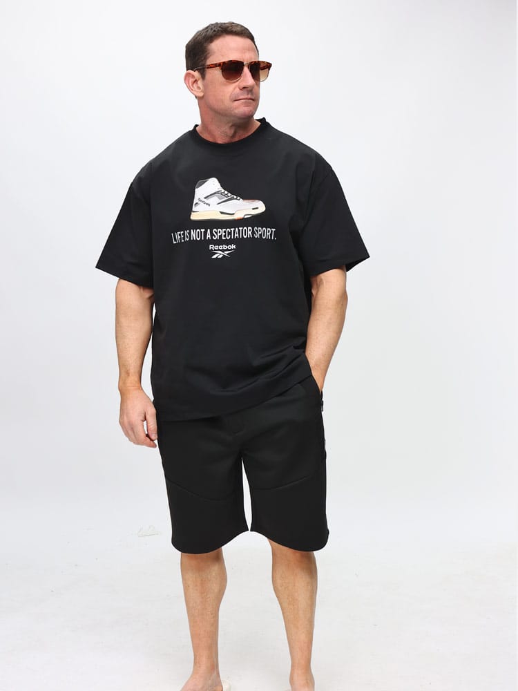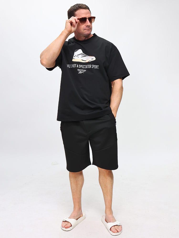 Reebokの綿タッチストレッチスムースメタリックプリントTシャツは、柔らかな綿のような感触のストレッチ素材を使用しており、体に優しくフィットします。表面には光沢のあるメタリックプリントが施されており、スタイリッシュで現代的な見た目を提供します。