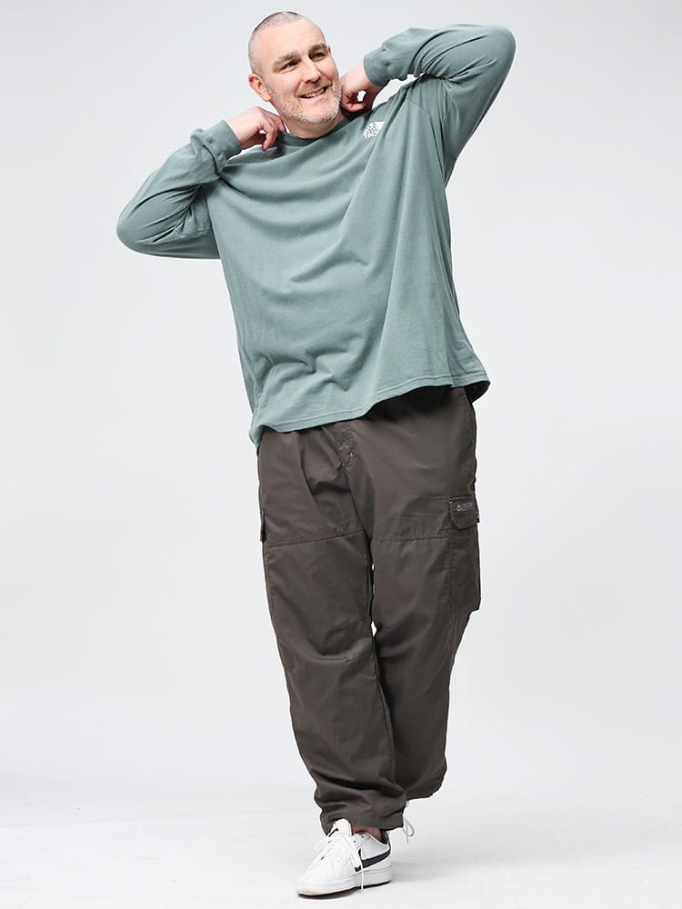 モデルデータ 身長:188cm / B:112 / W:95 / H:110 / S:29.0cm 着用サイズ 5L
