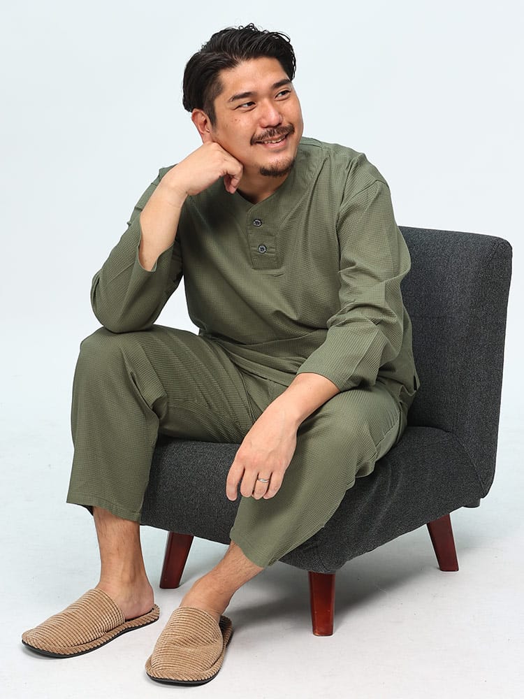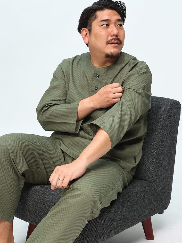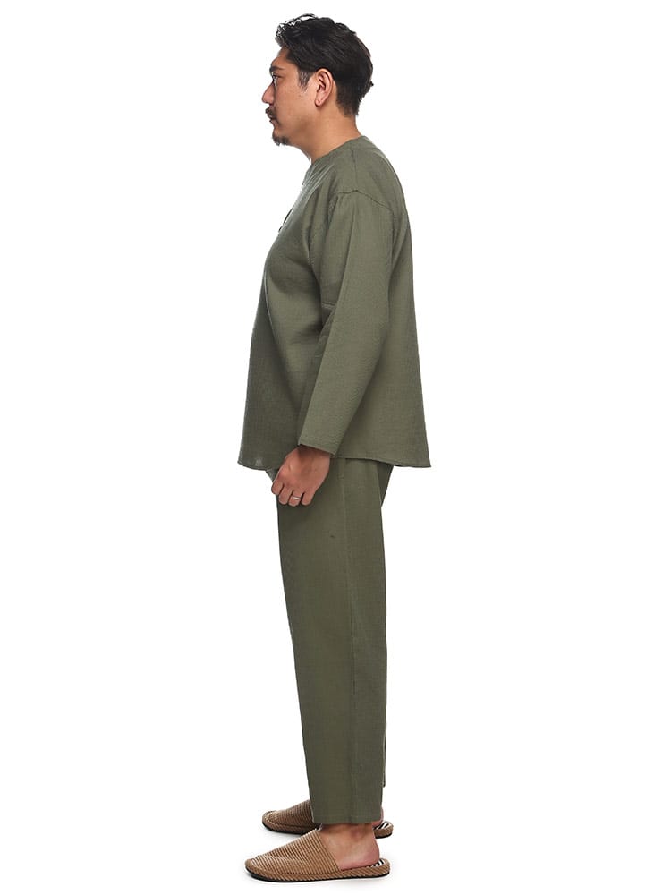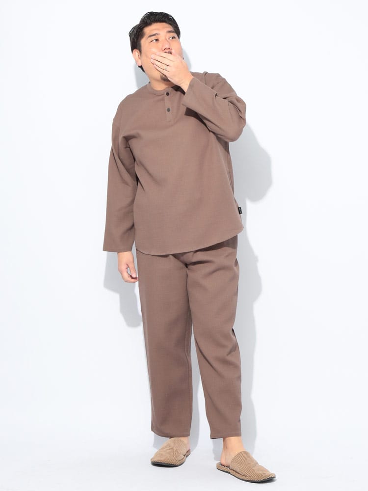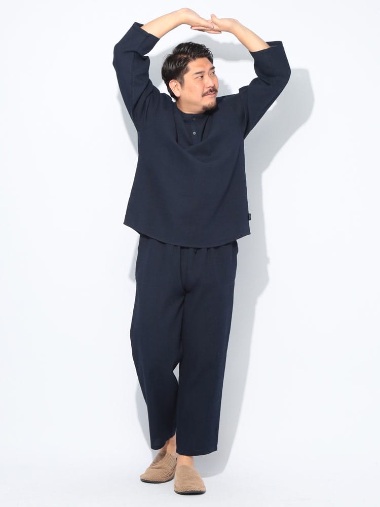 仕様 :ヘンリーネック / パンツポケット×2つ / ウエスト調節コード / 前閉じ / セットアップ