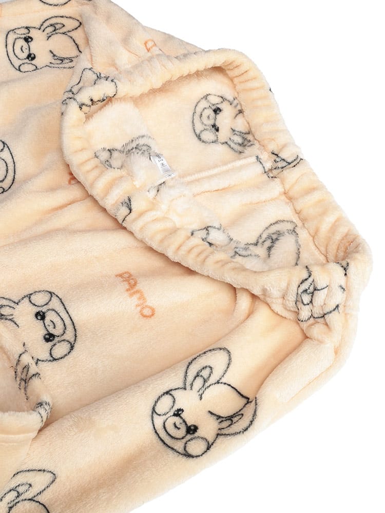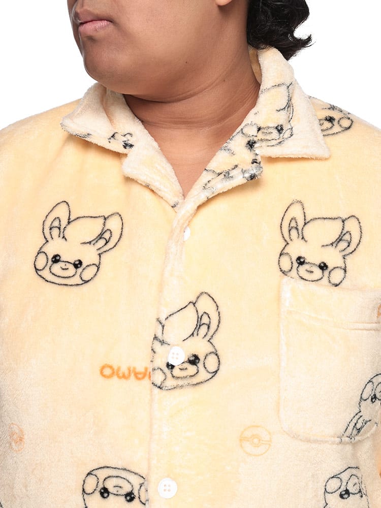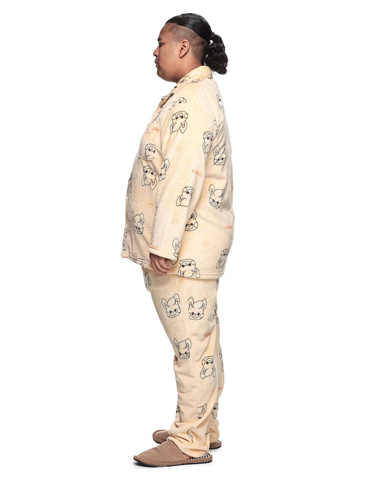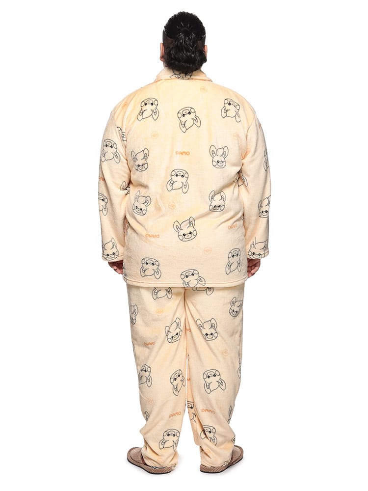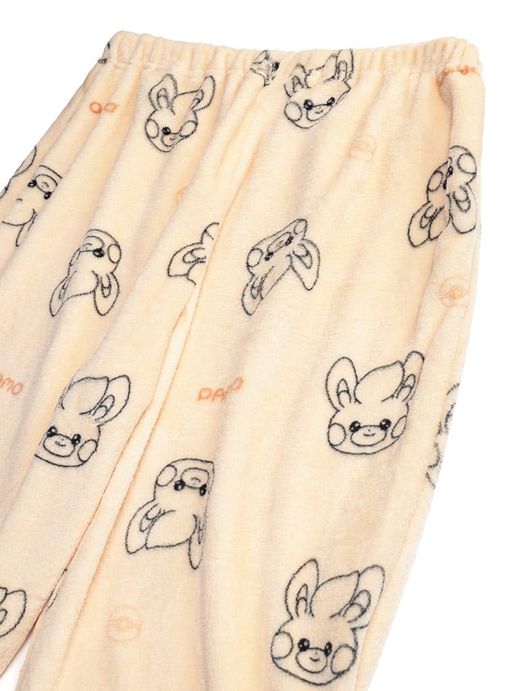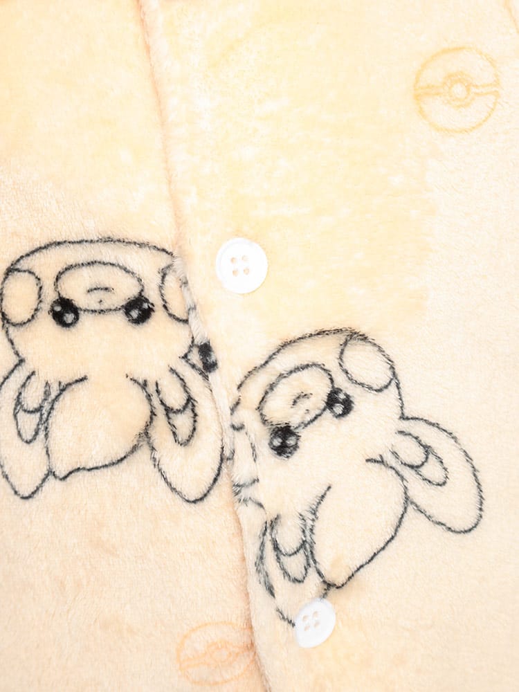 ポケモンの人気者、パモの可愛い総柄が目を引くフリースのパジャマです。ふわふわのフリース素材が心地よく、寒い冬もあたたかく過ごせます。パモの優しい笑顔がプリントされたデザインで、おうち時間を楽しくしてくれます。上下セットなので、リラックスした時間を満喫できます。パモ好きにはたまらないアイテムです。