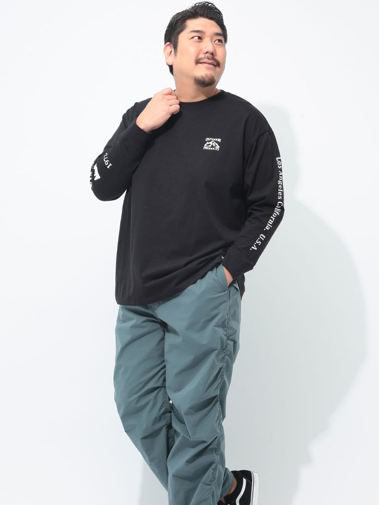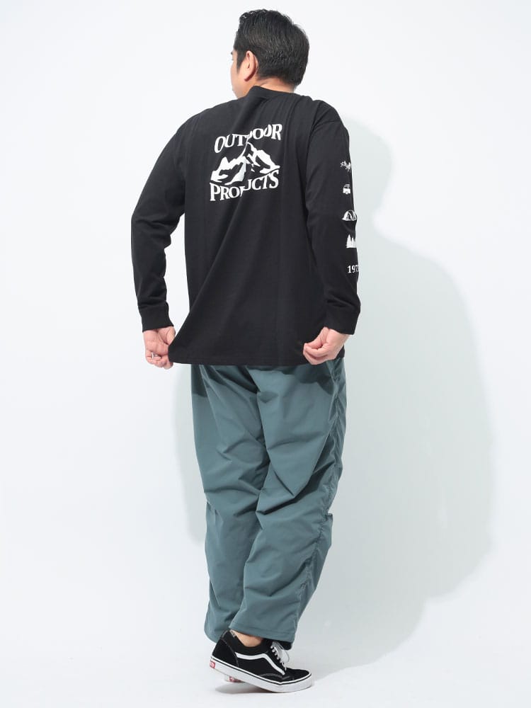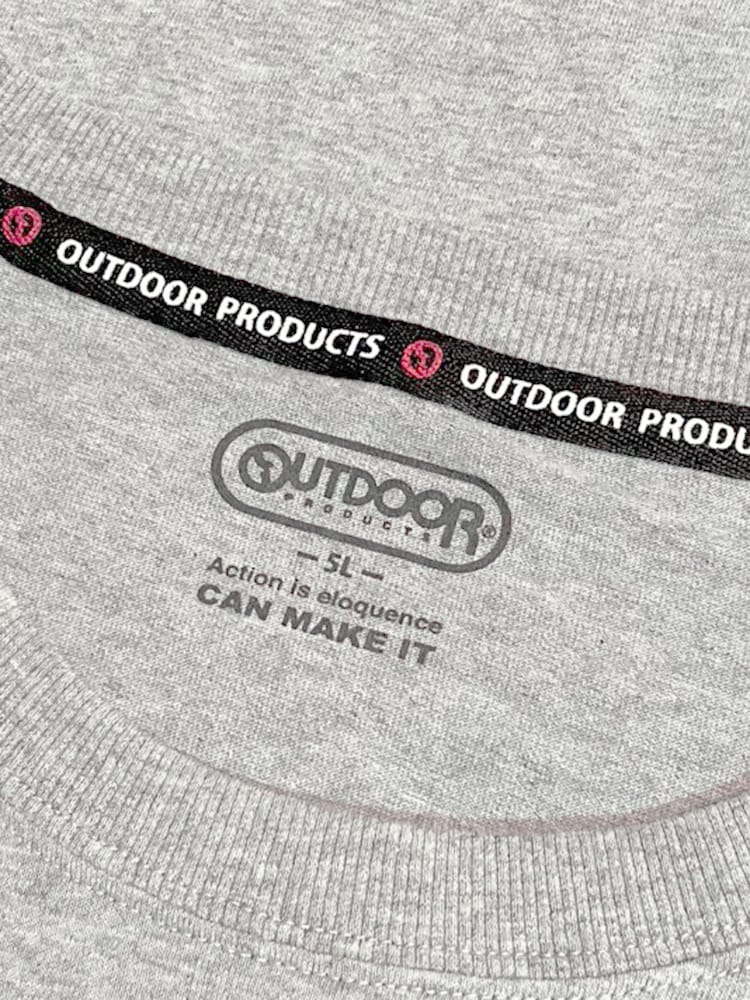 バックにはアウトドアプロダクツのロゴや自然をイメージさせるデザインが大きくプリントされ、シンプルながらも存在感抜群。