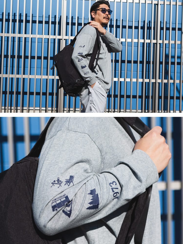 両袖にもアイコンのプリントがされており360度お洒落なロンTです。