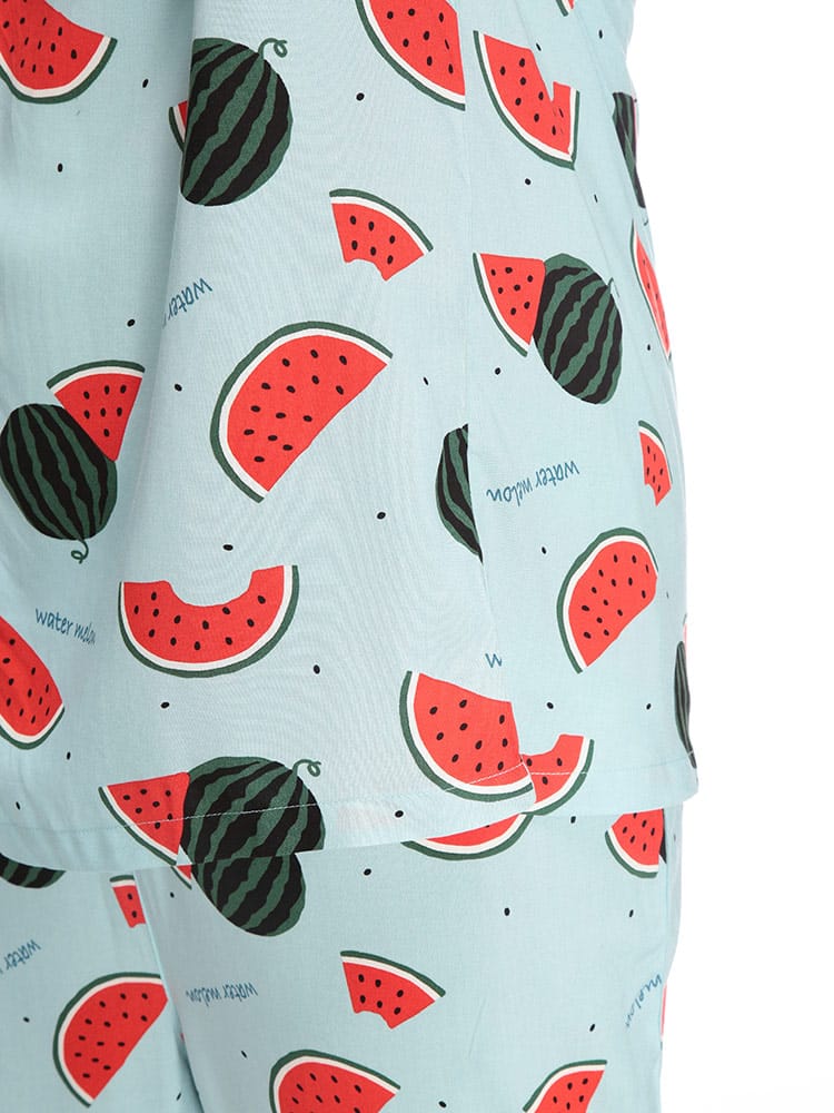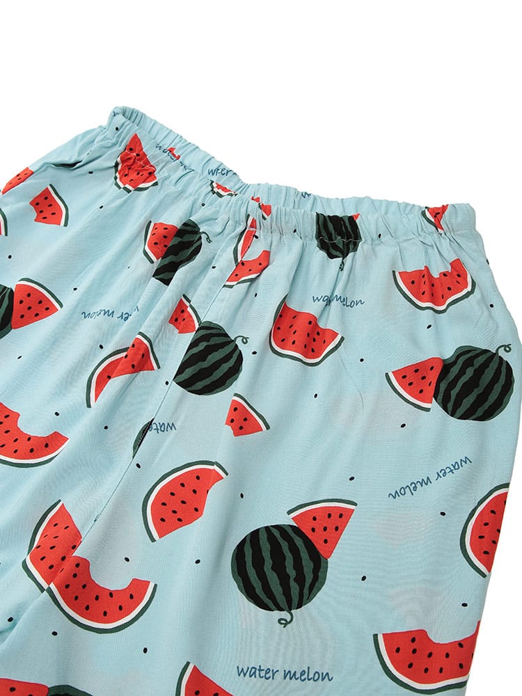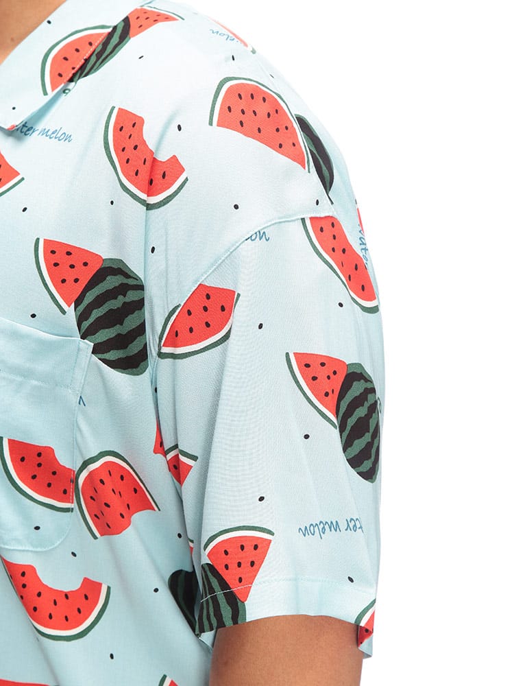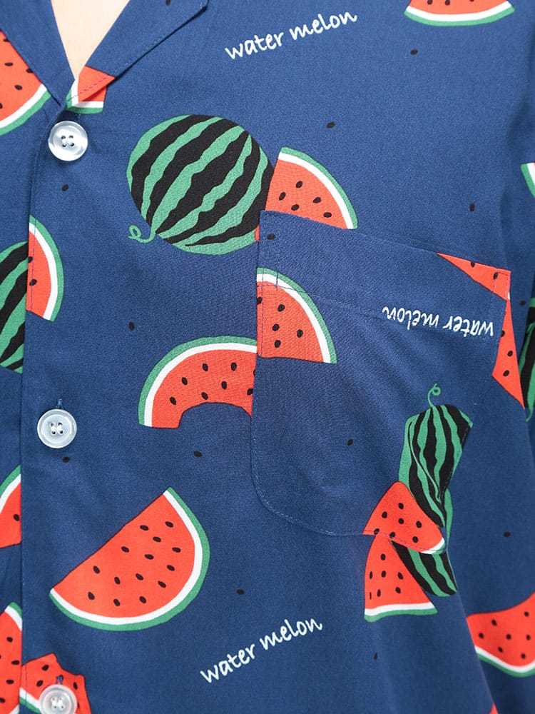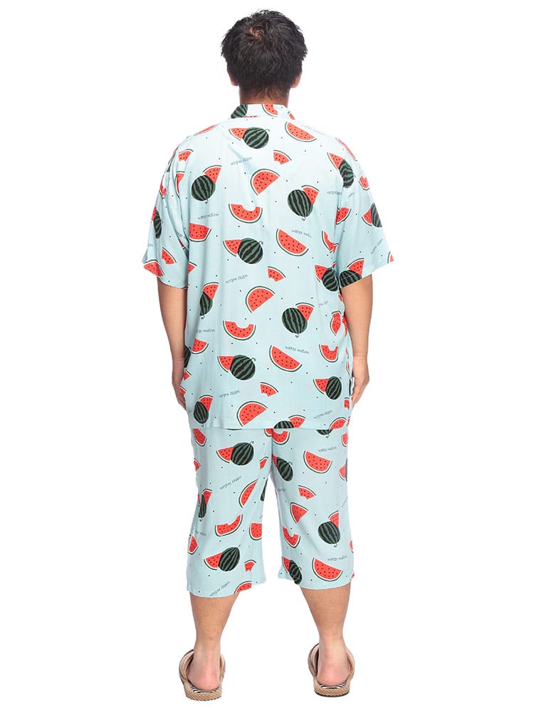 夏の夜を快適に過ごすなら、SAKAZENサカゼンの【接触冷感 スイカ柄 半袖 七分丈 パジャマ】がおすすめ!大きいサイズのメンズ向け上下セットで、ゆったりとした着心地を追求しました。肌に触れるとひんやり感じる接触冷感素材は、熱帯夜でも心地よい眠りをサポート。見ているだけでも涼しくなるポップなスイカ柄は、お部屋での気分を上げてくれます。素材はとろけるような肌触りのレーヨン100%。吸湿性にも優れているので、寝汗をかいてもベタつきにくいのが魅力です。ウエストは調節ゴム仕様で、どなたにもフィット。左側には便利なポケットが一つ付いており、ちょっとした小物の収納にも困りません。春から夏にかけて大活躍間違いなしのこのパジャマで、涼しく、楽しいリラックスタイムをお過ごしください。