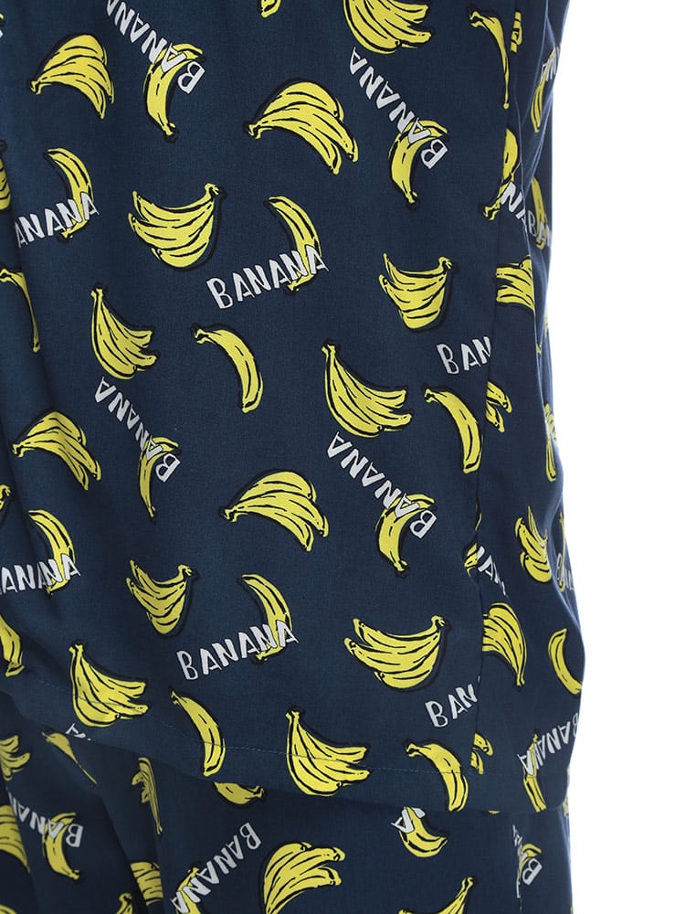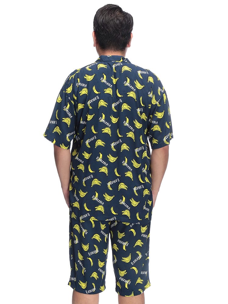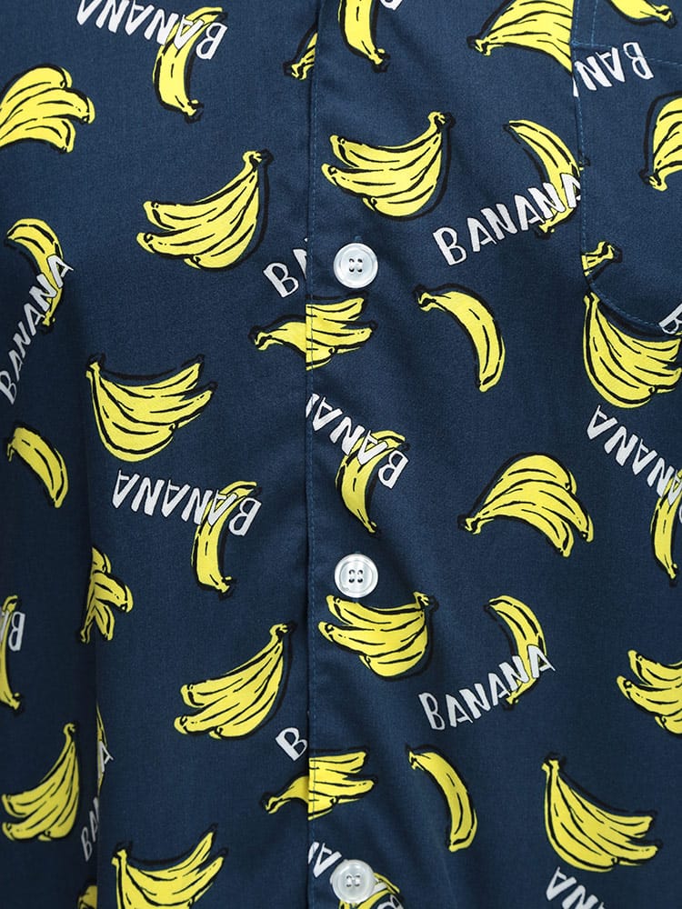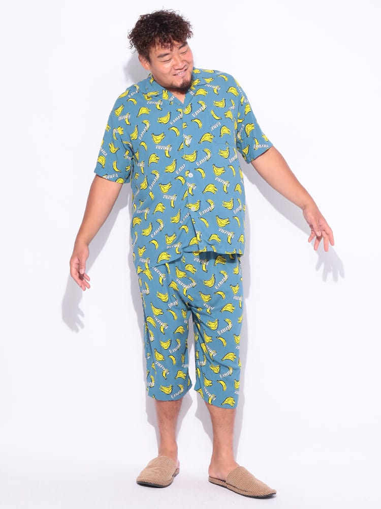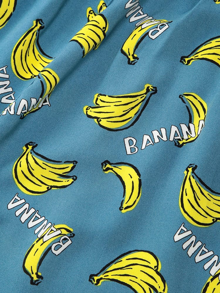 夏の夜を快適に過ごす「接触冷感パジャマ」が登場!ボタン止め半袖シャツとハイライズのゆったりハーフパンツの上下セットです。肌に触れるとひんやり感じる素材で、寝苦しい夜も爽やかに。可愛らしいバナナイラストパターンが、リラックスタイムを楽しく彩ります。解放感のある着心地で、心地よい睡眠をサポートします。