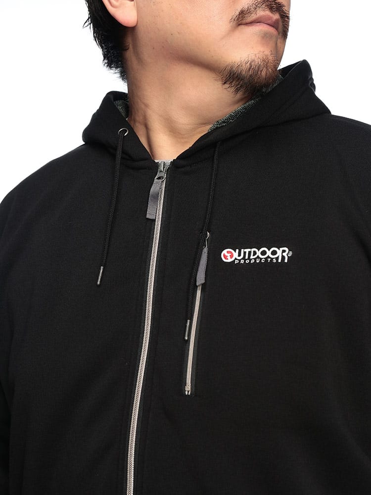 OUTDOOR PRODUCTS TC裏起毛 フルジップパーカーは、柔らかな肌触りの裏起毛素材を使用し、暖かく快適な着心地を提供します。アウトドアブランドならではの耐久性と、タウンユースにも馴染むデザインが魅力。寒い季節のアクティブなシーンから日常使いまで幅広く活躍する、着回し力抜群のアイテムです。