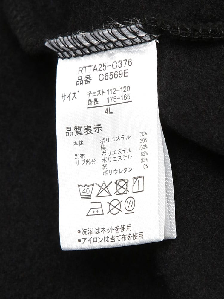 素材 :[本体]ポリエステル70% 綿30% [別布]ポリエステル100% [リブ]ポリエステル62% 綿33% ポリウレタン5%