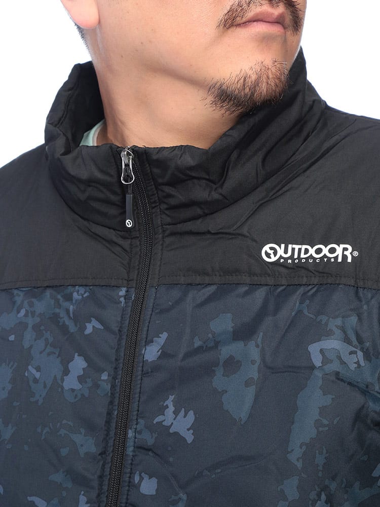 裏地のアルミプリントが魔法瓶のように熱を逃がさない、OUTDOOR PRODUCTSの保温性抜群な中綿ジャケットです。体温を反射するアルミ素材と中綿のダブル効果で、厳しい寒さでも暖かさをキープします。首元まで覆うフルジップタイプで防風性も優秀。軽量で動きやすく、アウトドアはもちろん、冬の通勤・通学や普段使いのアウターとしても大活躍する、機能的で頼もしい一着です。