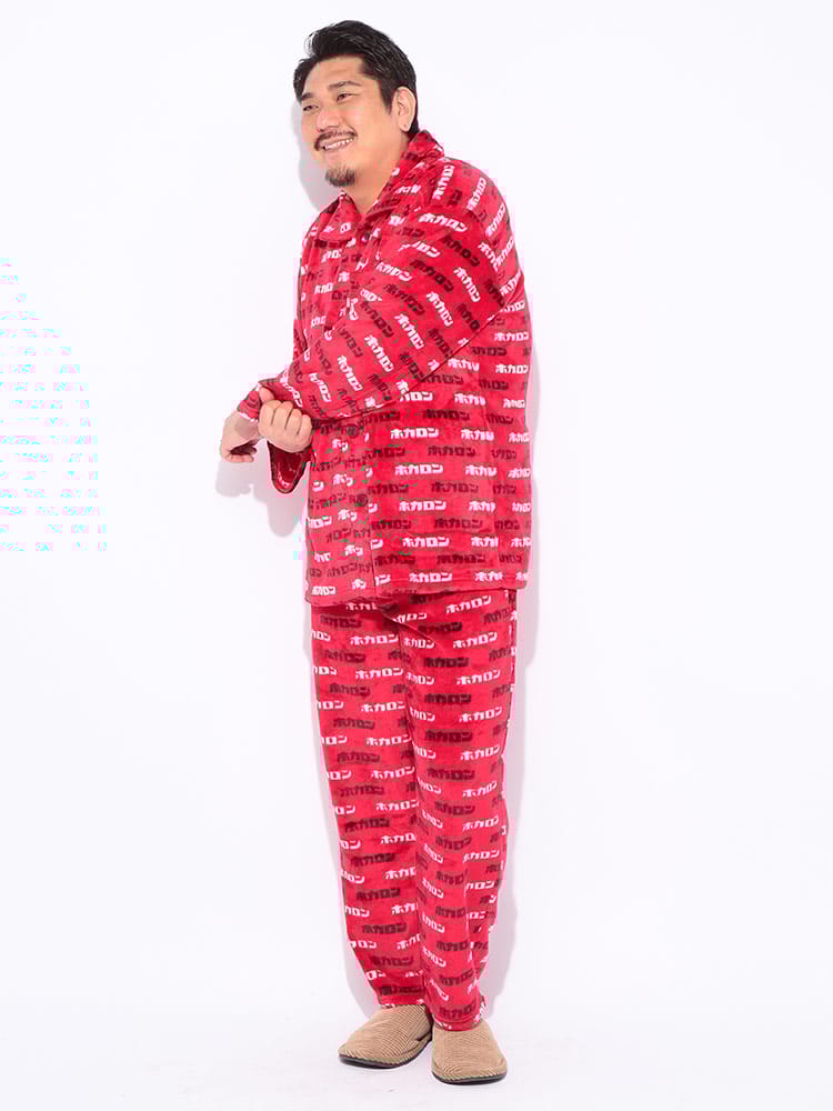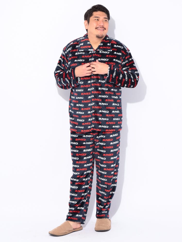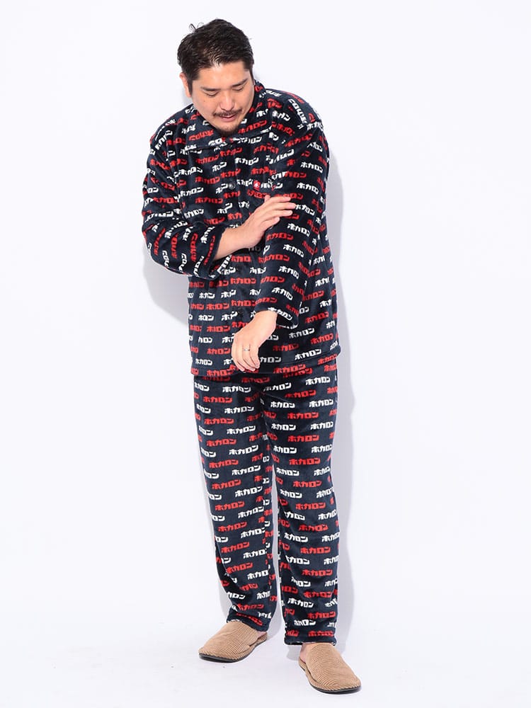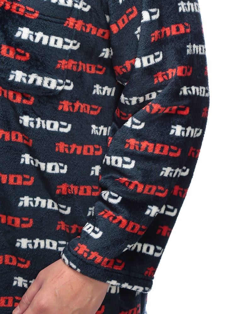 カイロブランド「ホカロン」の機能性を活かした、発熱中綿入りのフリースパジャマです。総柄デザインが遊び心と暖かさを演出し、特殊な中綿が体から出る水分を熱に変えることで、着るだけでホカホカの温もりを感じられます。軽くて肌触りの良いフリース素材は、寒い冬のリラックスタイムを快適にサポートします。