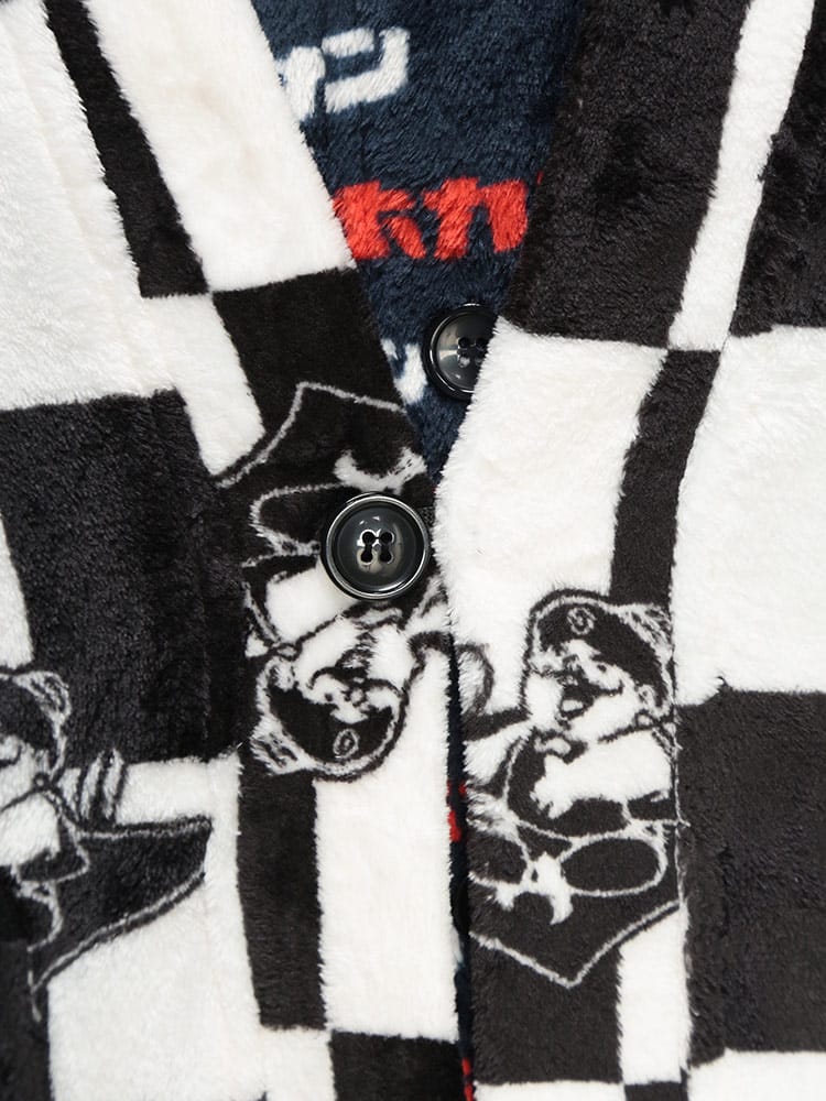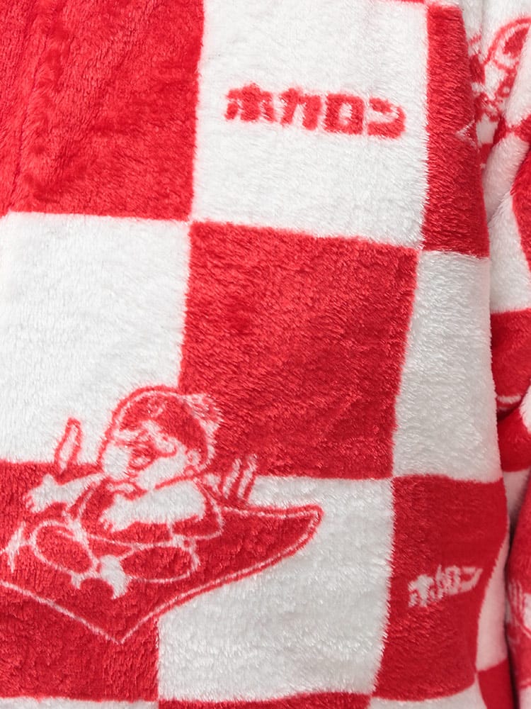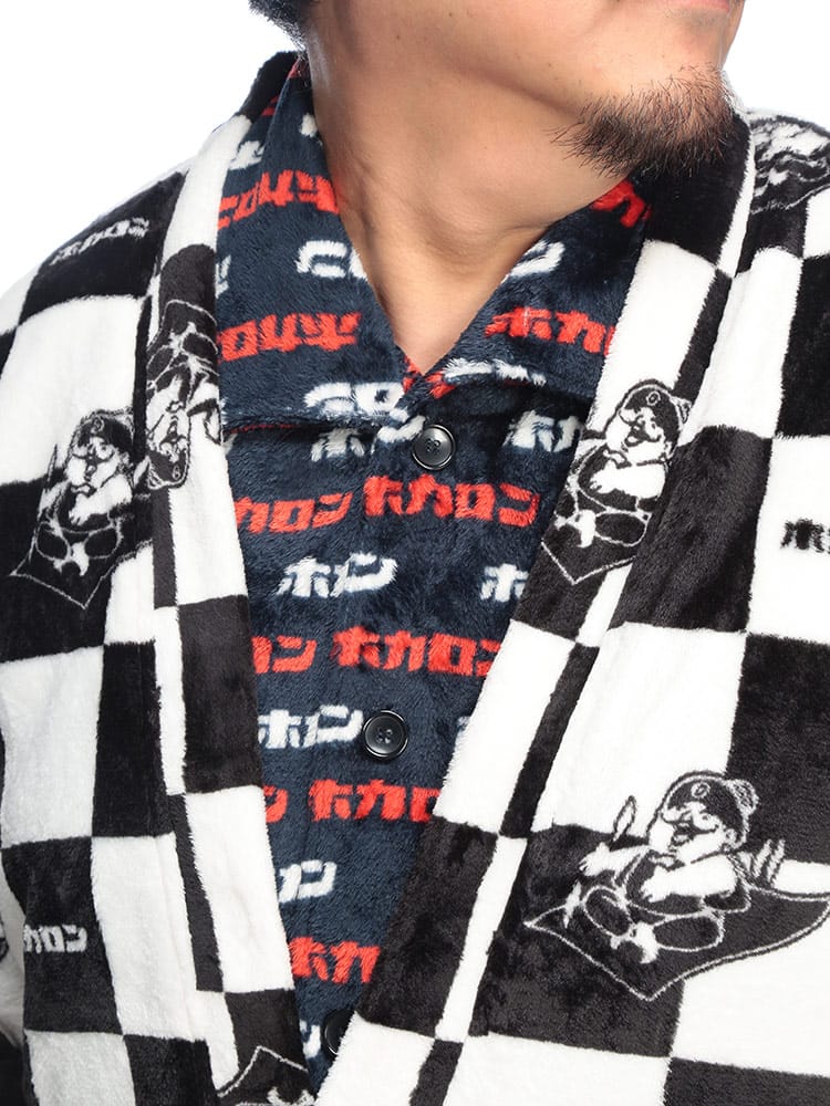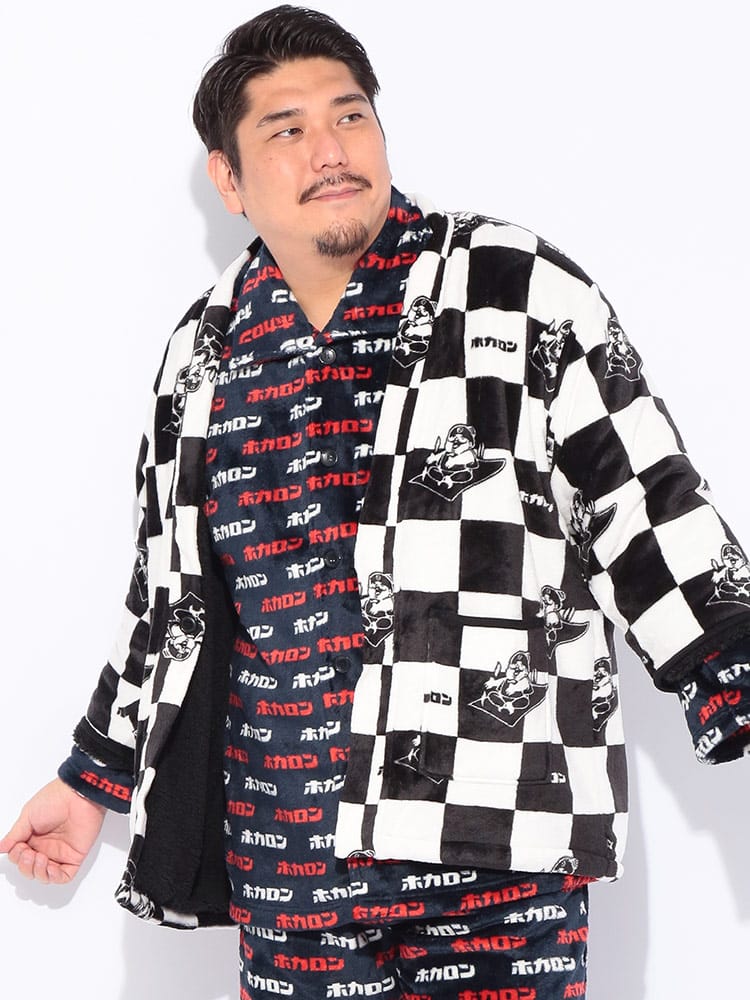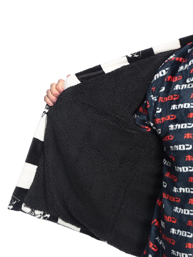 カイロブランド「ホカロン」とコラボレーションした、裏ボア仕様のフリース半纏。内側全体に施された柔らかなボアが抜群の保温性を発揮し、寒い冬もポカポカとした温もりで包み込みます。落ち着いた格子柄(チェック柄)のデザインで、世代を問わず着用可能。軽量で暖かく、ご自宅でのリラックスタイムにぴったりの防寒着です。