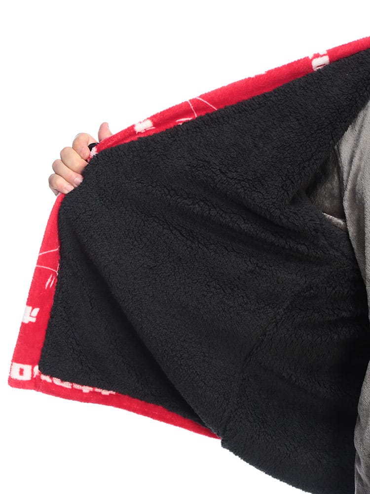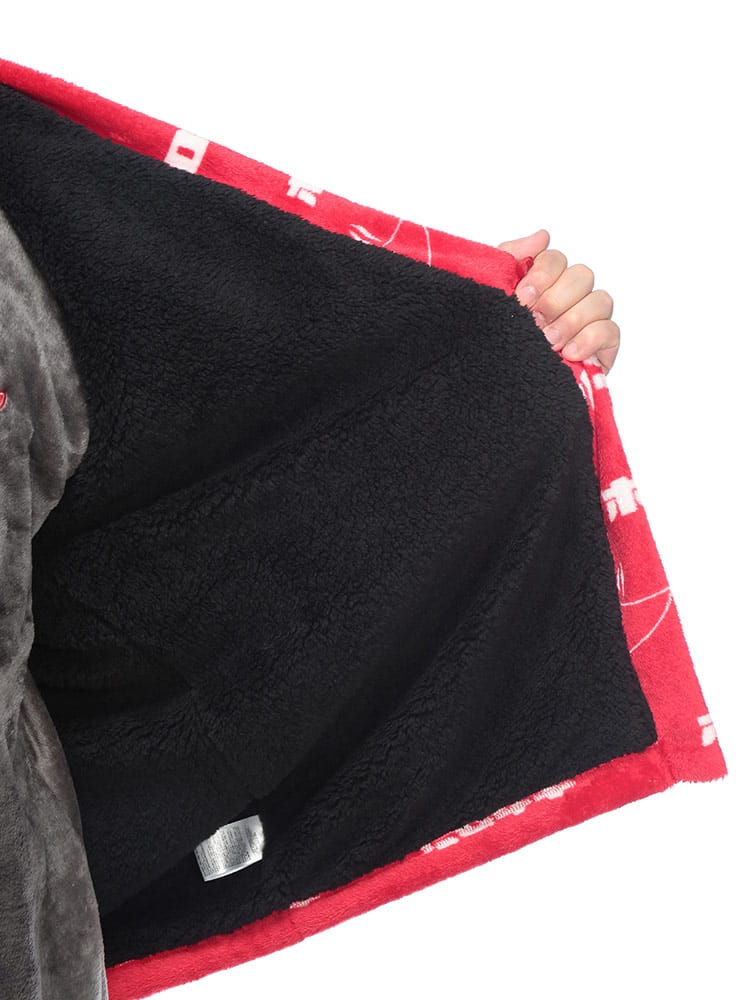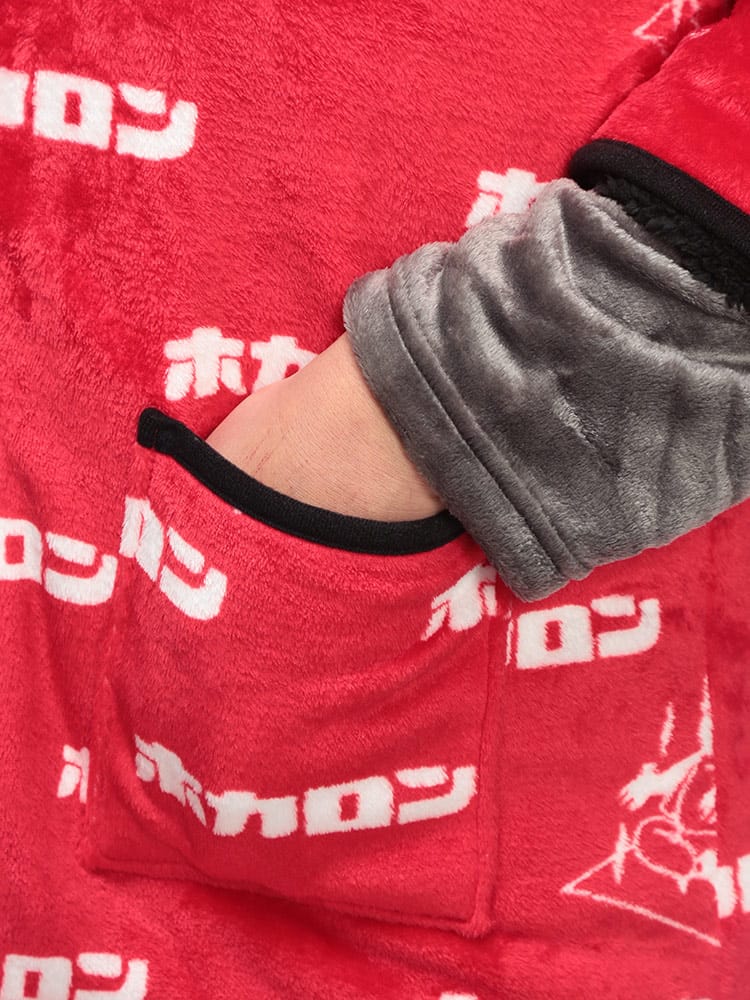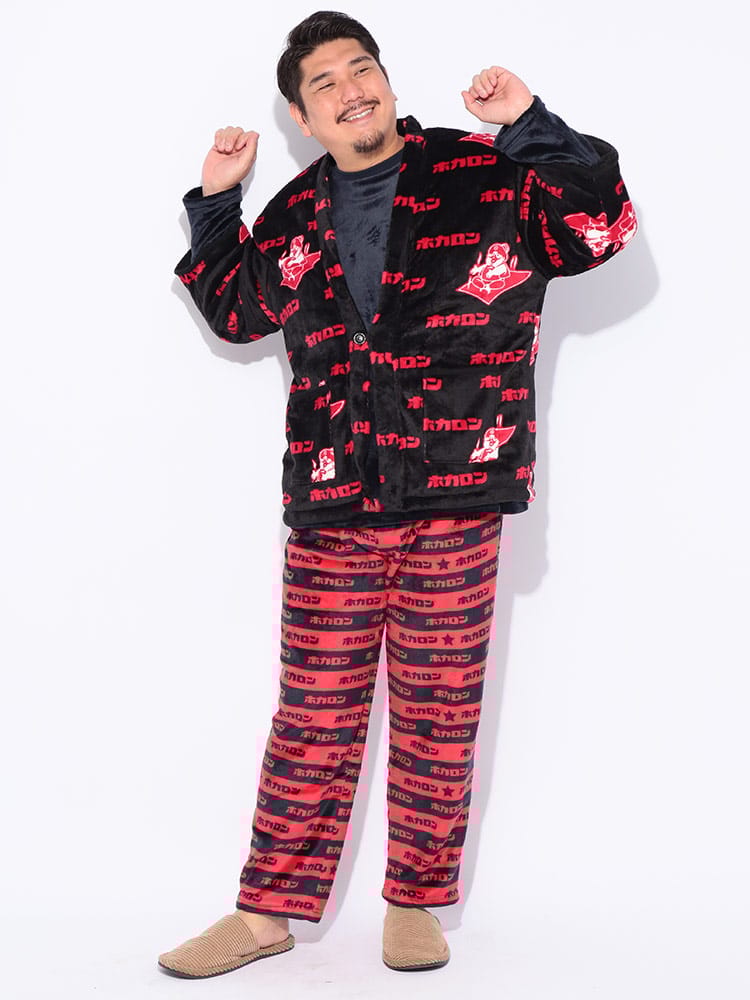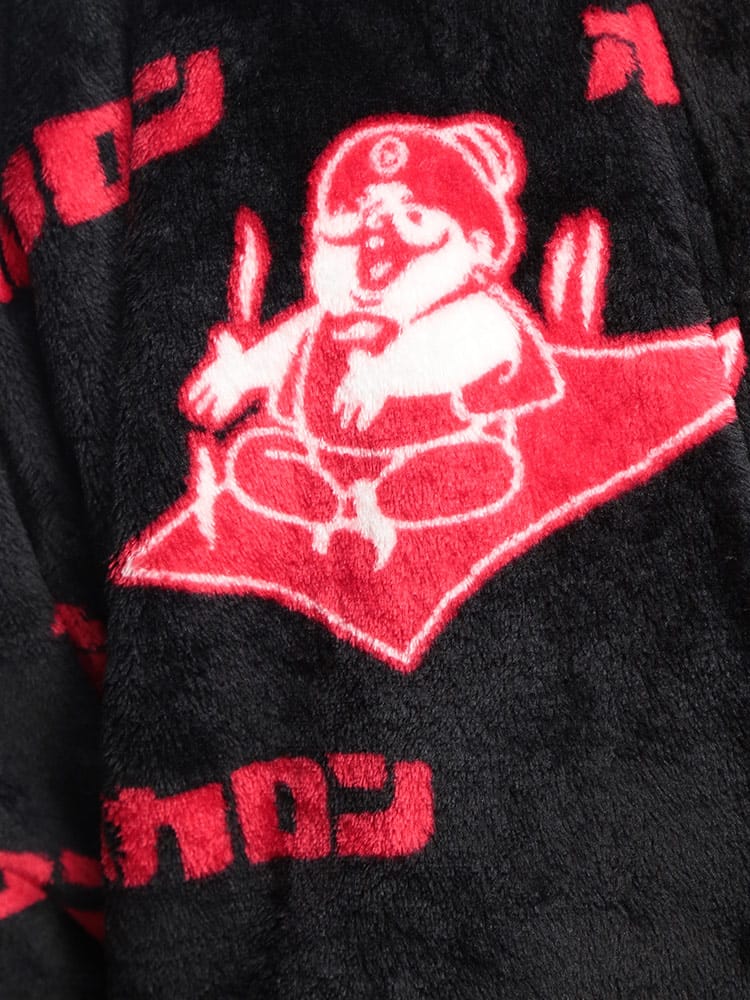 カイロブランド「ホカロン」のロゴをあしらった、総柄デザインの遊び心あふれる裏ボア半纏。内側全体に施されたふかふかの裏ボアが、まるで毛布のような極上の温もりを提供します。軽くて柔らかいフリース素材で着心地も抜群。寒い冬のリラックスタイムを、楽しく暖かく過ごしたい方に最適な防寒アイテムです。