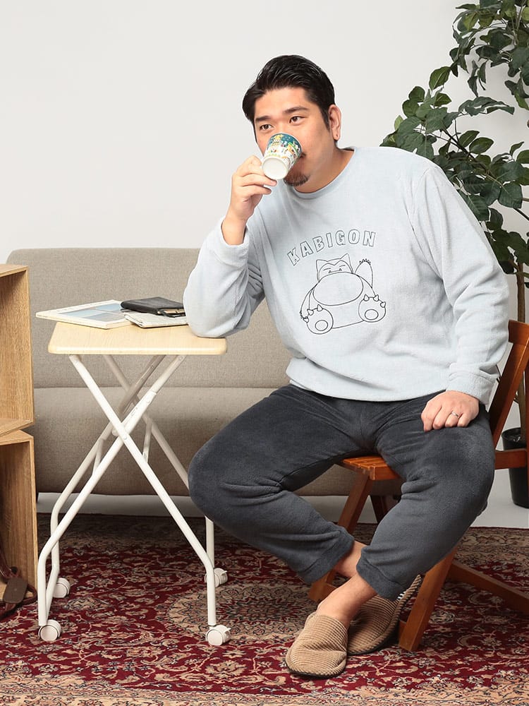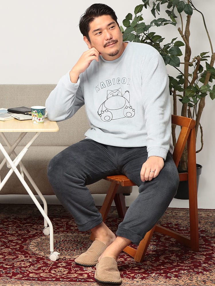 「家で過ごす時間が、一番の癒やしに変わる」ポケモン・カビゴンデザインのフリース 上下セット ルームウェアが登場!ゆったりとした大きいサイズで展開し、リラックスタイムに最適な着心地を追求しました。本体は肌触りが抜群に良いポリエステル100%のフリース素材。カビゴンをイメージしたカラーリングとデザインが、見ているだけで心まで和ませます。驚くほどの保温性とふんわり感で、寒い季節の部屋着として大活躍。クルーネックのトップスと、ウエスト調節ゴム・コード付きのボトムスが、締め付け感なく身体を優しく包み込みます。ボトムスには便利なポケットも2つ付いています。カビゴンと一緒に、冬のおうち時間を暖かく、そして可愛らしく過ごしませんか?極上のリラックスタイムをお約束する、ファン必見のアイテムです。