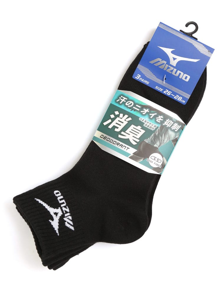 MIZUNOからデオックスファイバーを使用した3足組ショートソックス。独自の技術である消臭素材をコーティングし、編み込まれたデオックスファイバー。つま先とかかと部分に設計されていて、消臭に効率的な設計。使いやすいモノトーンのカラー展開で使い回ししやすいアイテムです。