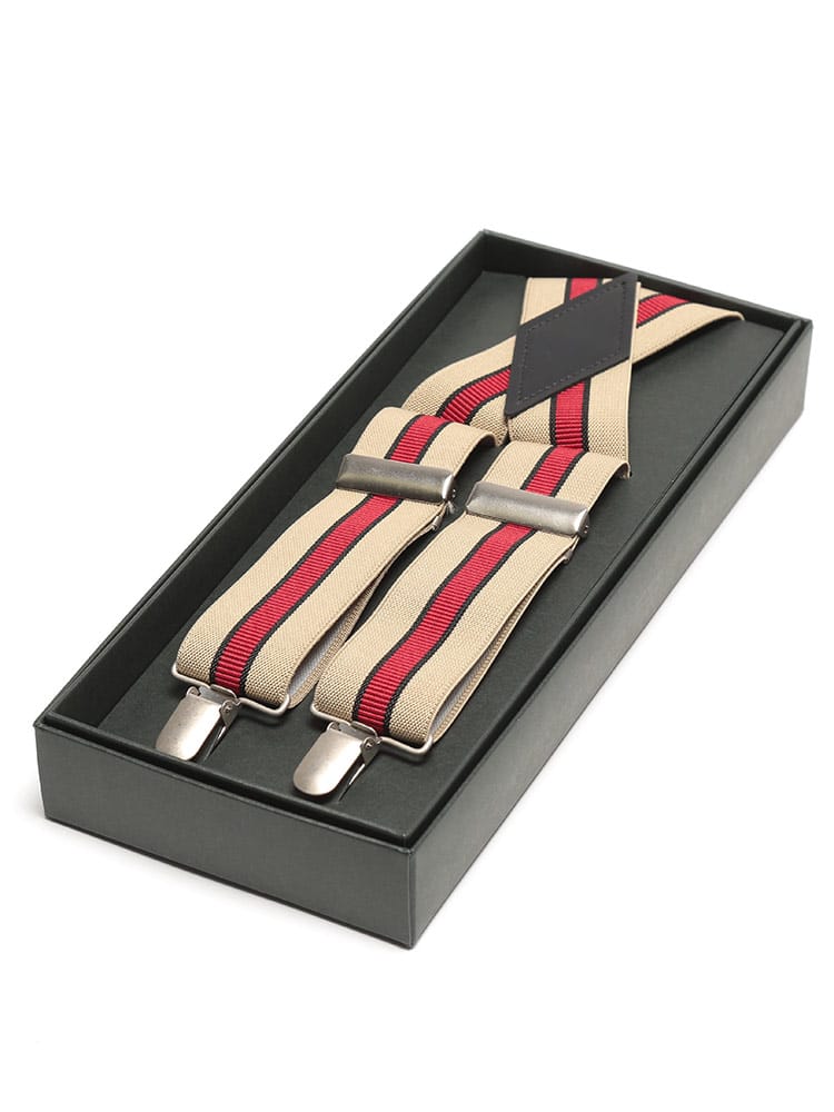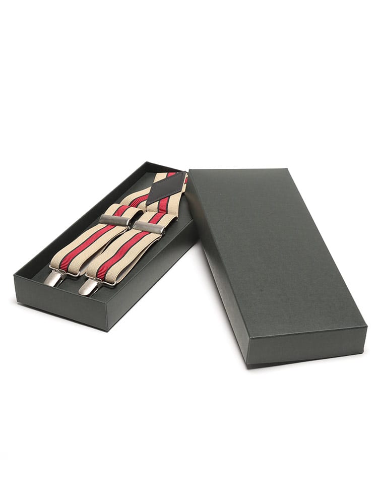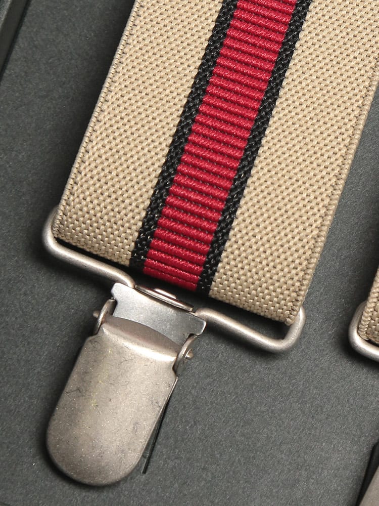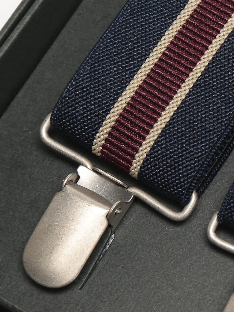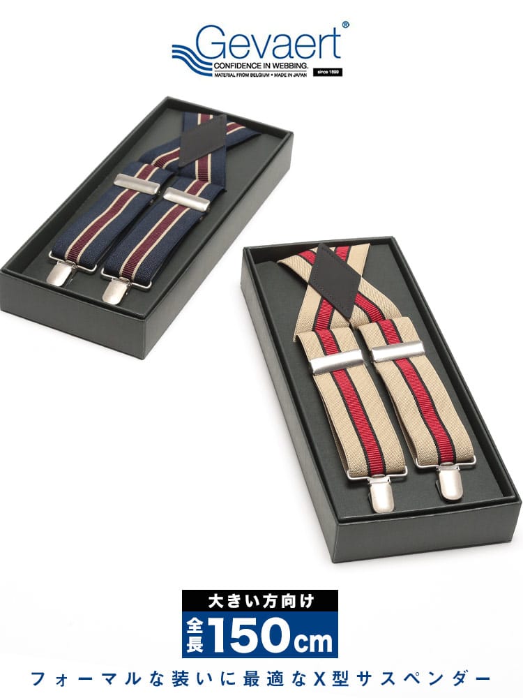 フォーマルな装いにおすすめしたいセンターライン X型 サスペンダーです。センターラインデザインがスタイリッシュで上品な印象のアイテム。専用の箱付きです。ファーマルにはもちろんカジュアルにもお使いいただけるサスペンダーです。ご自分用はもちろん、プレゼントにもいかがでしょうか。