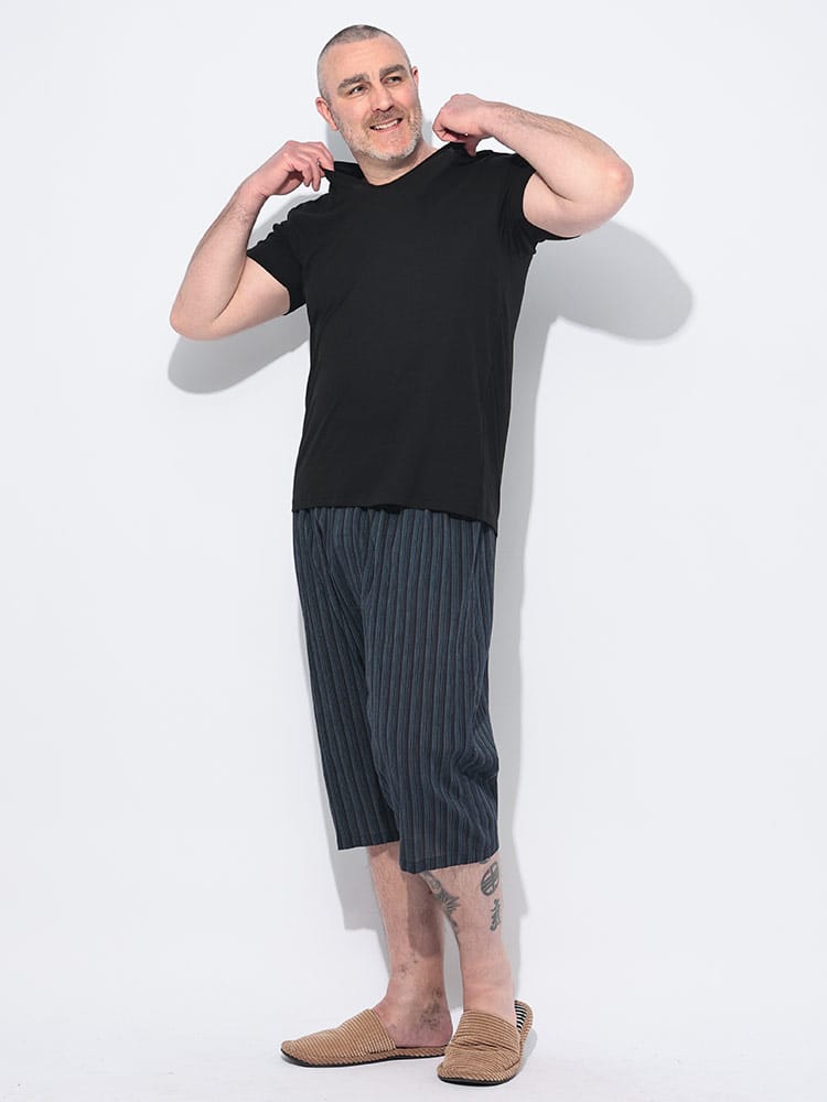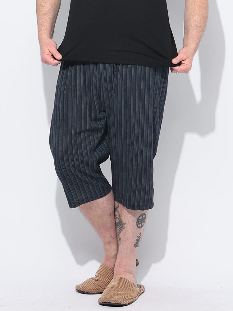 SAKAZENの綿100%爽やかクレープ先染めステテコは、日本の蒸し暑い夏を快適に過ごすために開発された機能性ステテコです。「クーリッシュウェーブ」加工を施したクレープ素材は、独特のシャリ感が肌へのベタつきを抑え、サラリとした清涼感を提供します。綿100%ならではの優れた通気性と放湿性により、ムレや汗による不快感を軽減し、常にドライで快適な状態を保ちます。また、伸縮性にも優れているため、動きやすく、リラックスタイムにも最適です。先染めによる上品な色合いとシンプルなデザインは、年齢を問わず幅広い層にマッチします。