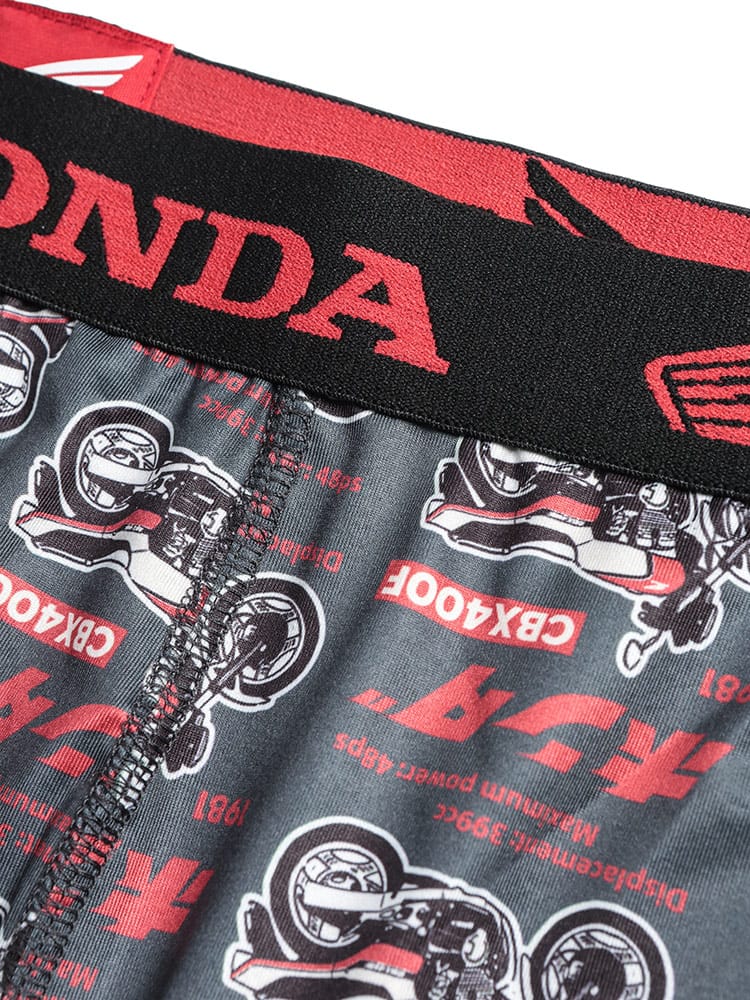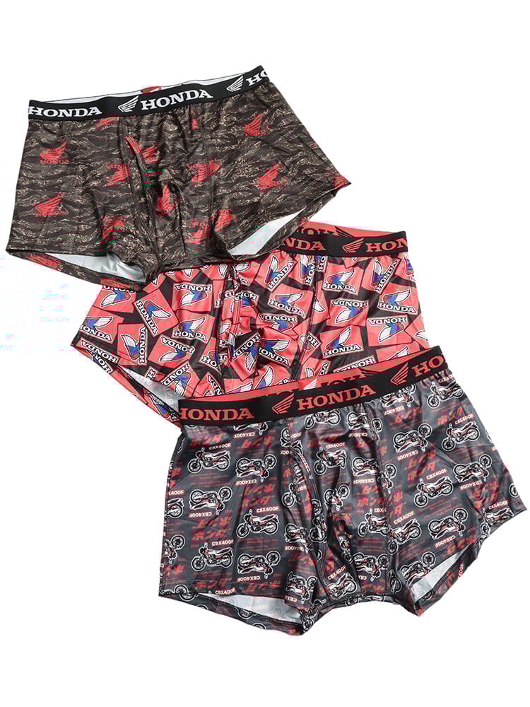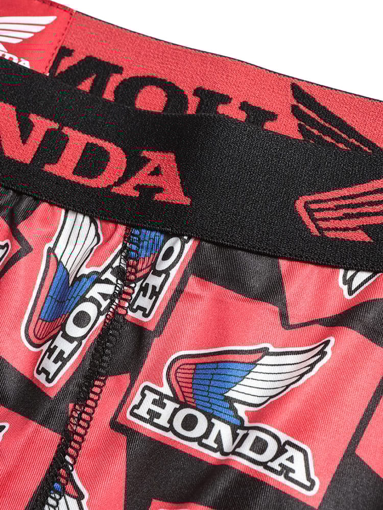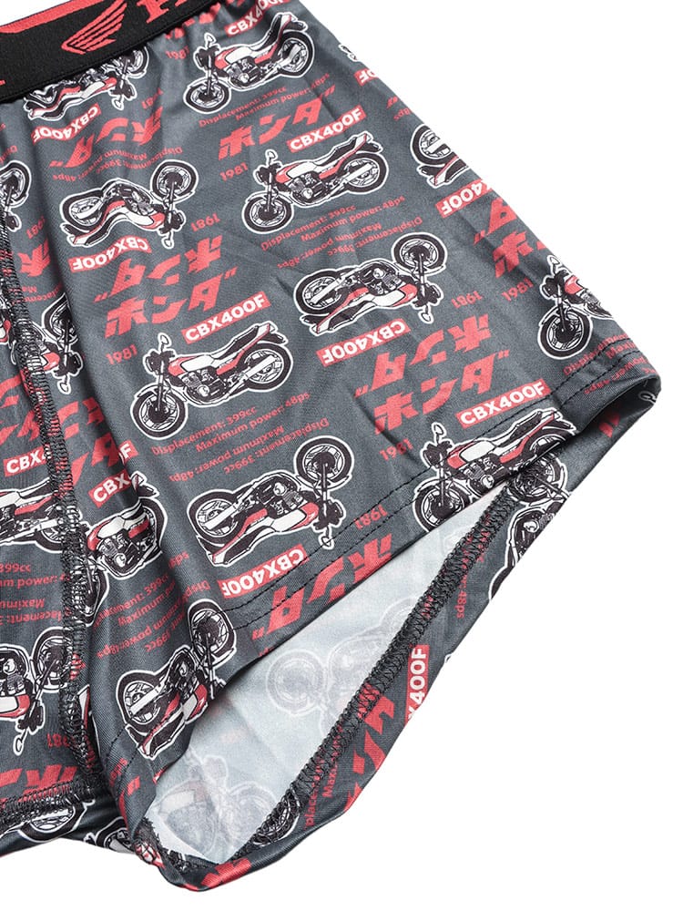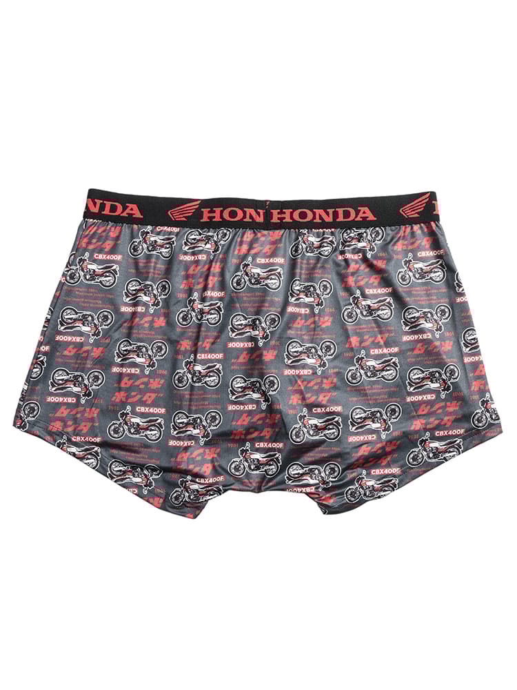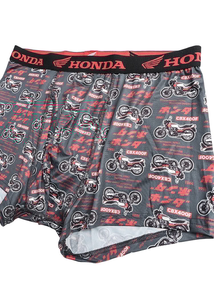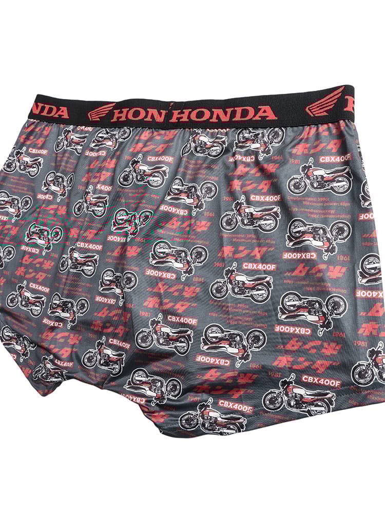 世界的な人気を誇る「HONDA」のロゴやマシンをモチーフにした、遊び心あふれる総柄プリントのボクサーパンツです。伸縮性に優れたベア天竺素材を採用しており、体に程よくフィットする快適な穿き心地を実現しました。便利な前開き仕様で、実用性も抜群。大きいサイズの方もゆったりと着用できるサイズ設計です。インナーから個性を演出できるデザインは、ファンの方はもちろん、日常使いのアクセントにも適しています。