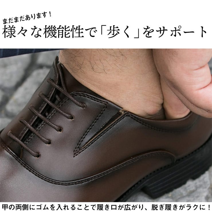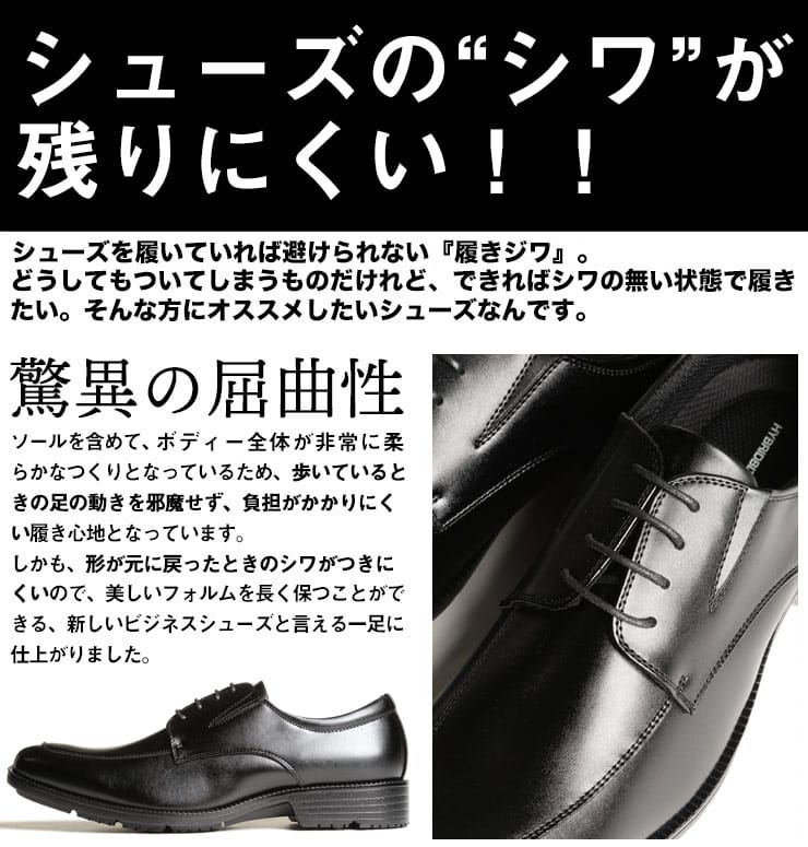 制菌消臭と吸水速乾機能を搭載した外羽根式のUチップシューズです。レザーを使用した上品な仕上がり。屈曲性・クッション性抜群でまるでスニーカーのような履き心地でビジネスシーンを快適にサポートします。ビジネスを足元から支えるおすすめの一足です。