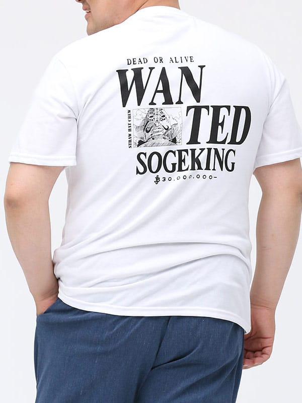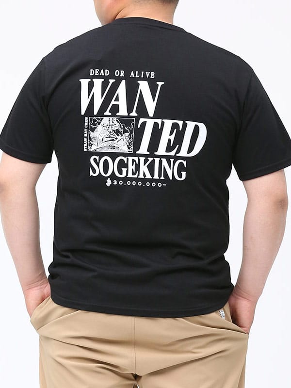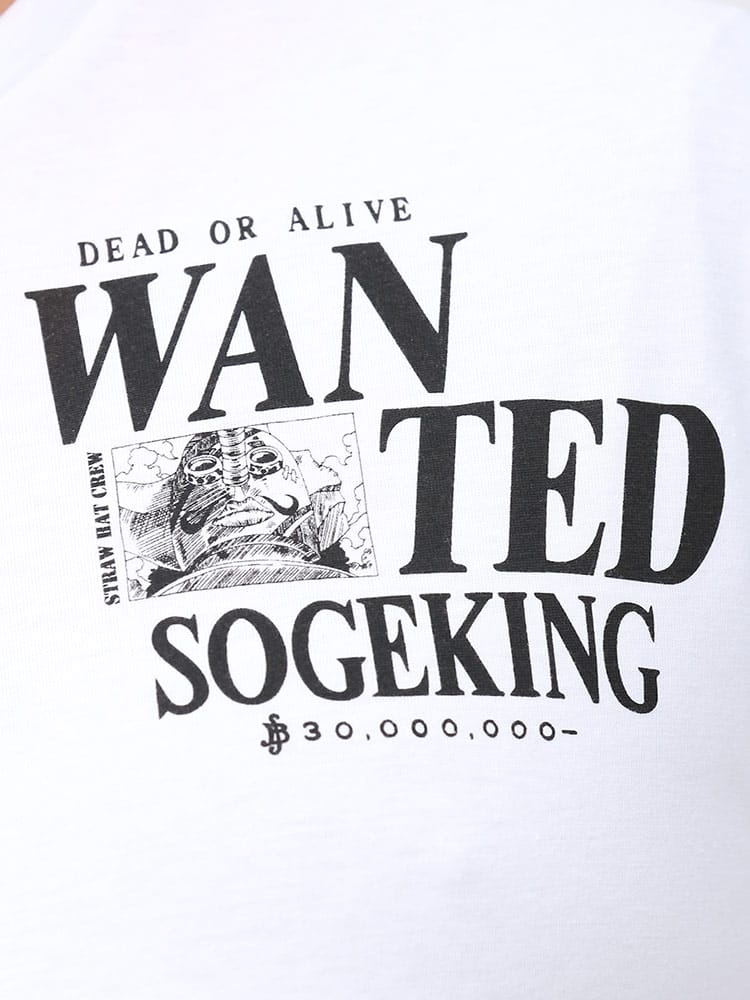 大人気漫画「ワンピース」のキャラクター 「そげキング」をデザインした クルーネック 半袖 Tシャツです。バックに大きく手配書をフィーチャーしたデザインが目を引きます。左胸のプリントもポイント。首元はベーシックなクルーネック。コーデにアクセントをプラスしてくれる一枚です。