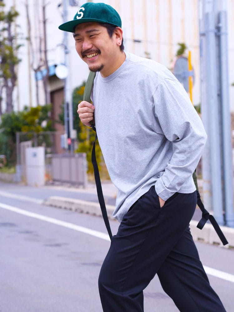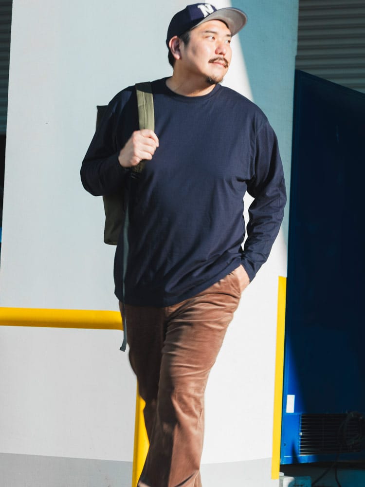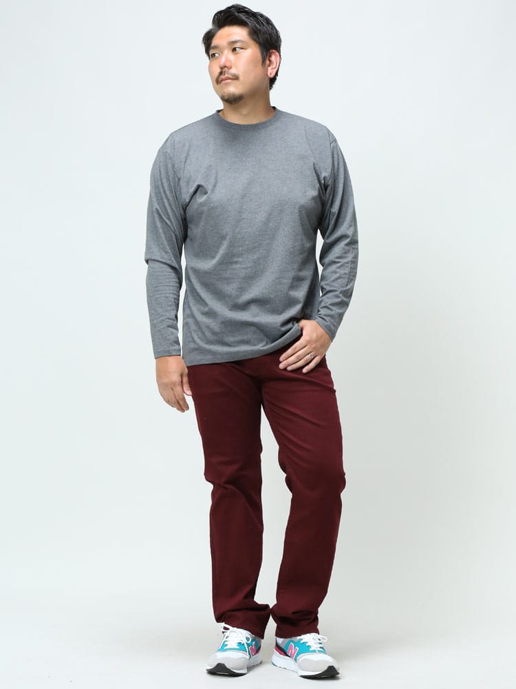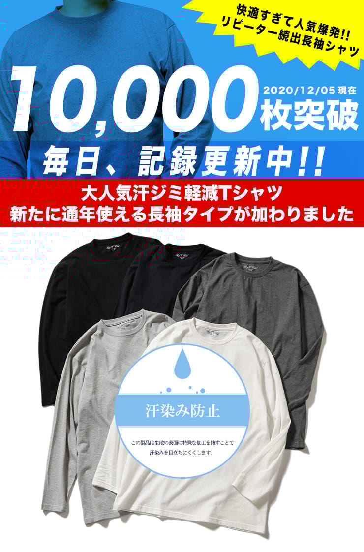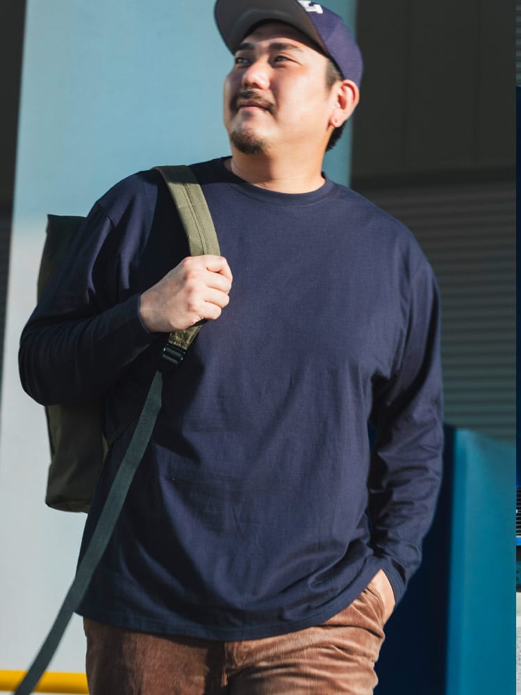 無地のシンプルなデザインが魅力のクルーネック 長袖 Tシャツ。首元は定番のクルーネックデザイン。生地の表面に特殊な加工を施すことで汗染みを目立ちにくくする汗染み軽減加工を施しています。スタンダードなルックで一枚あると何かと便利なおすすめのアイテムです。