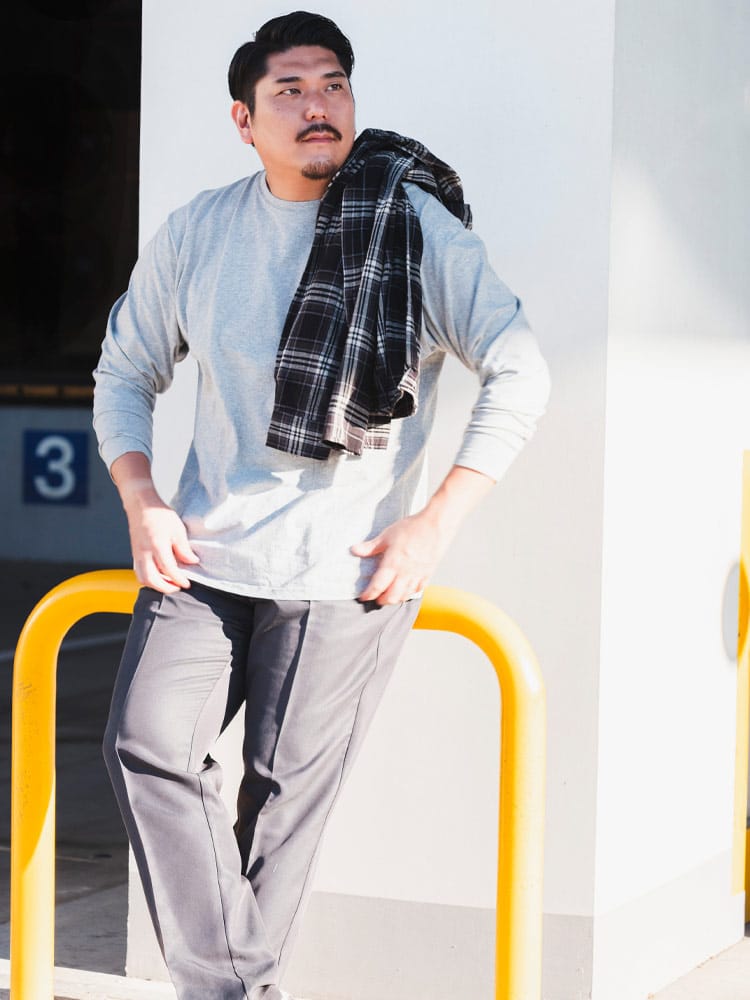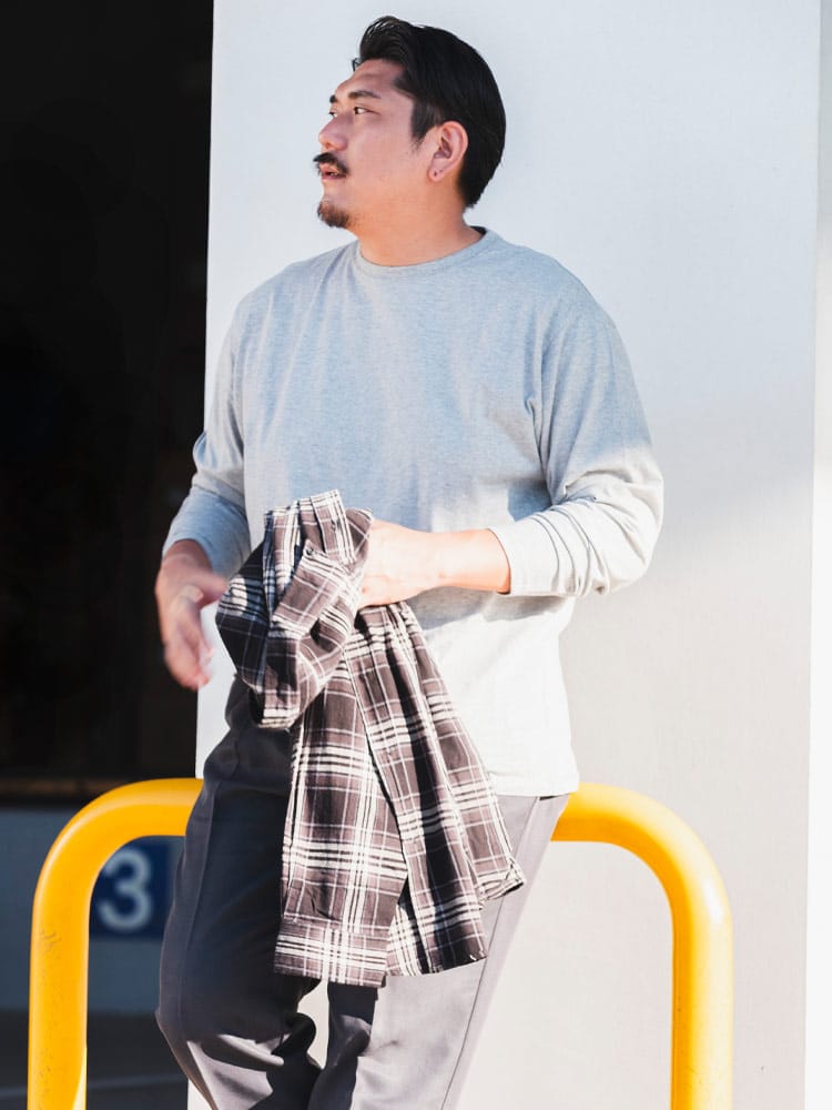 身長:195cm / B:120 / W:109 / H:116 / S:31.0cm 着用サイズ:X1(3L~4L相当)