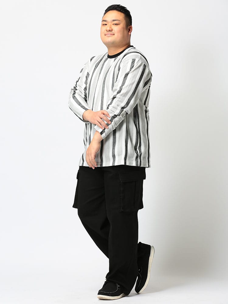 身長:178cm / 体重105kg / B:113 / W:105 / H:108 / S:28.0cm 着用サイズ:X1(3L~4L相当)