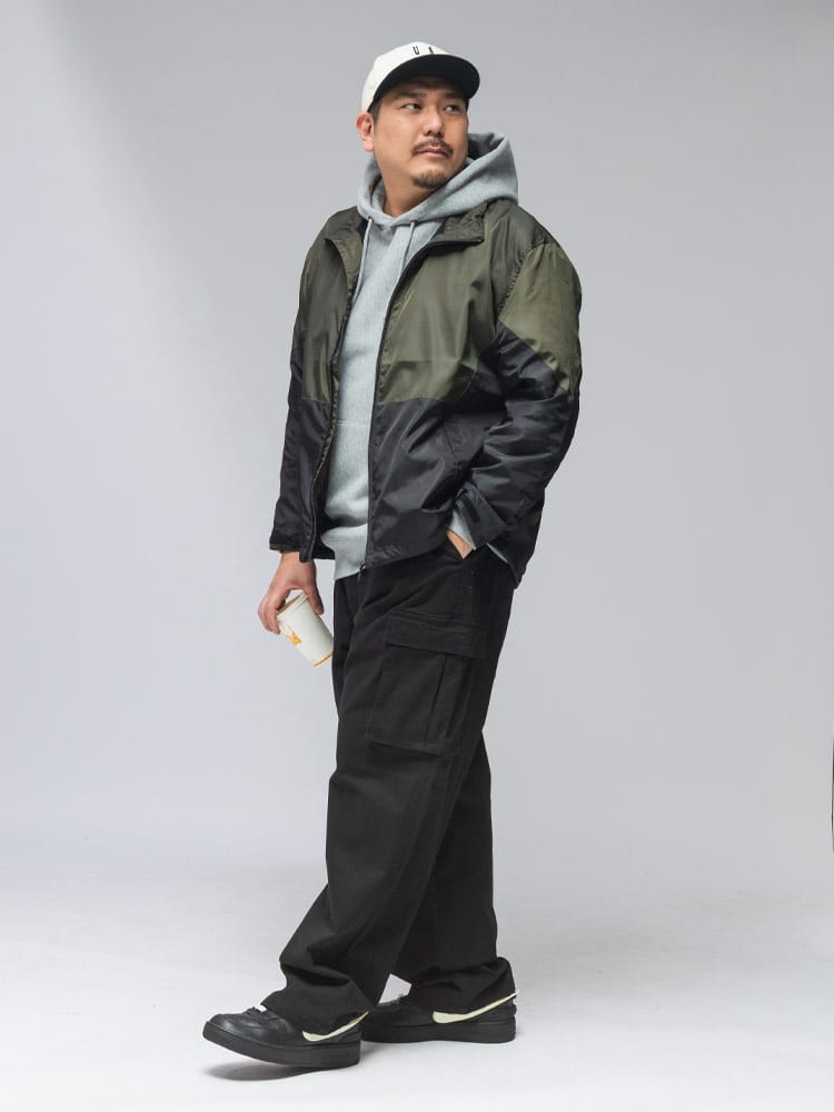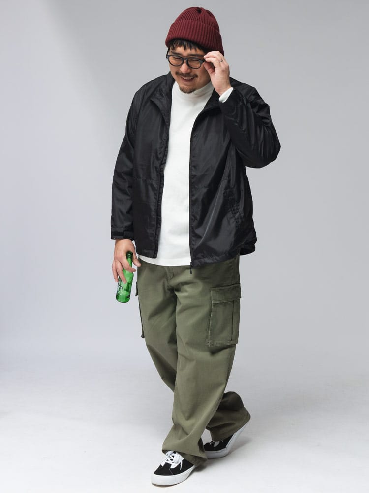 身長:178cm / 体重105kg / B:113 / W:105 / H:108 / S:28.0cm 着用サイズ:X1(3L~4L相当)