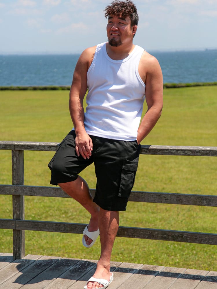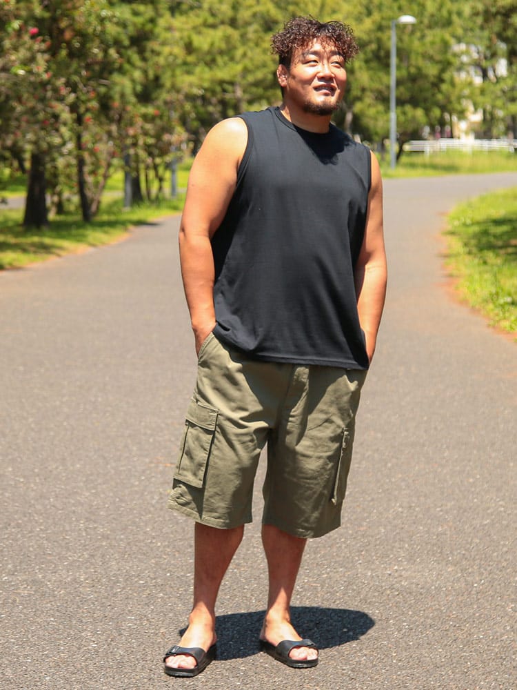 身長:178cm / 体重105kg / B:113 / W:105 / H:108 / S:28.0cm 着用サイズ:X1(3L~4L相当)