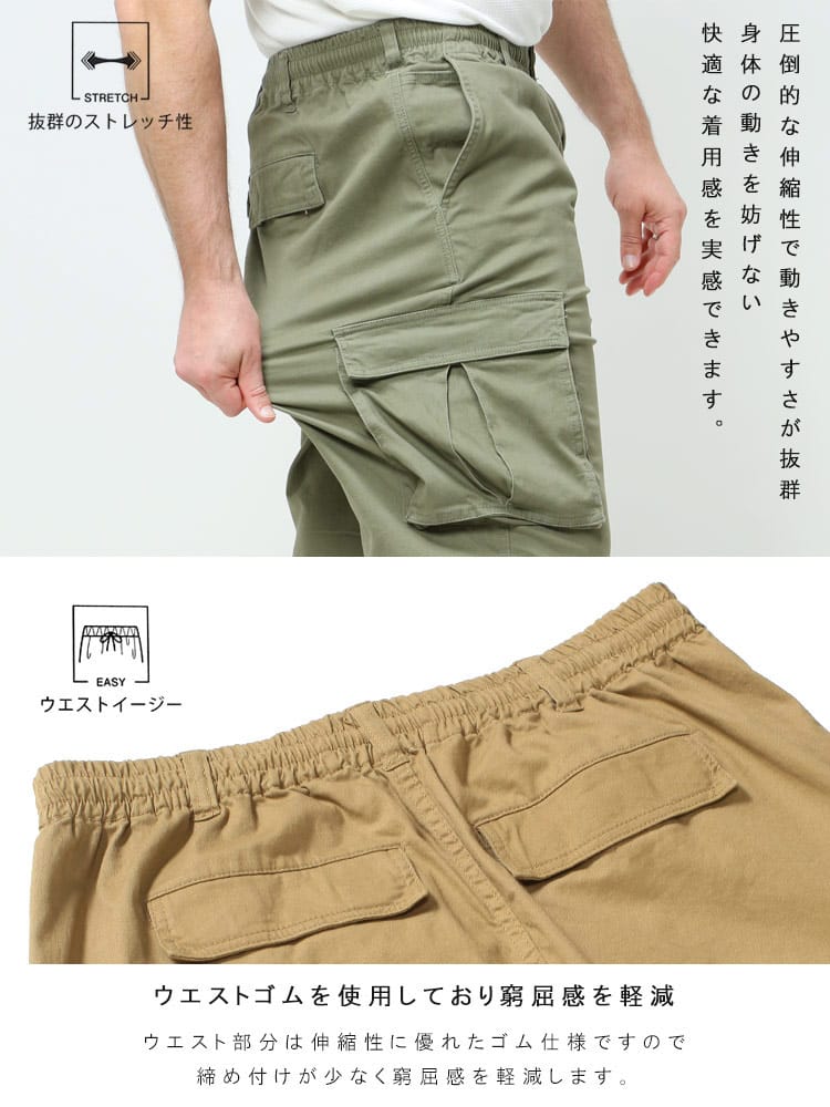 仕様 :ウエスト調節ゴム / ジップフライ / 外側ポケット数×6つ / ストレッチ