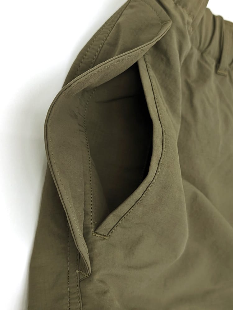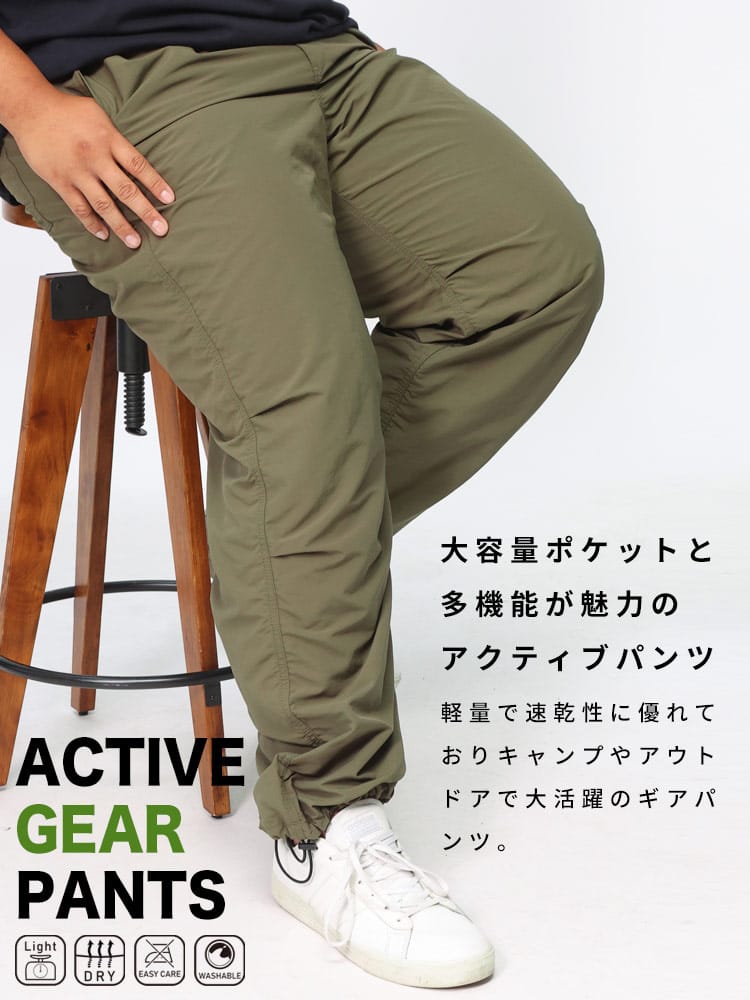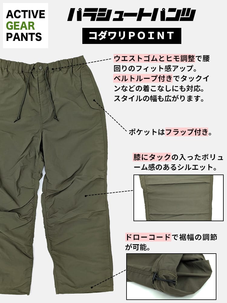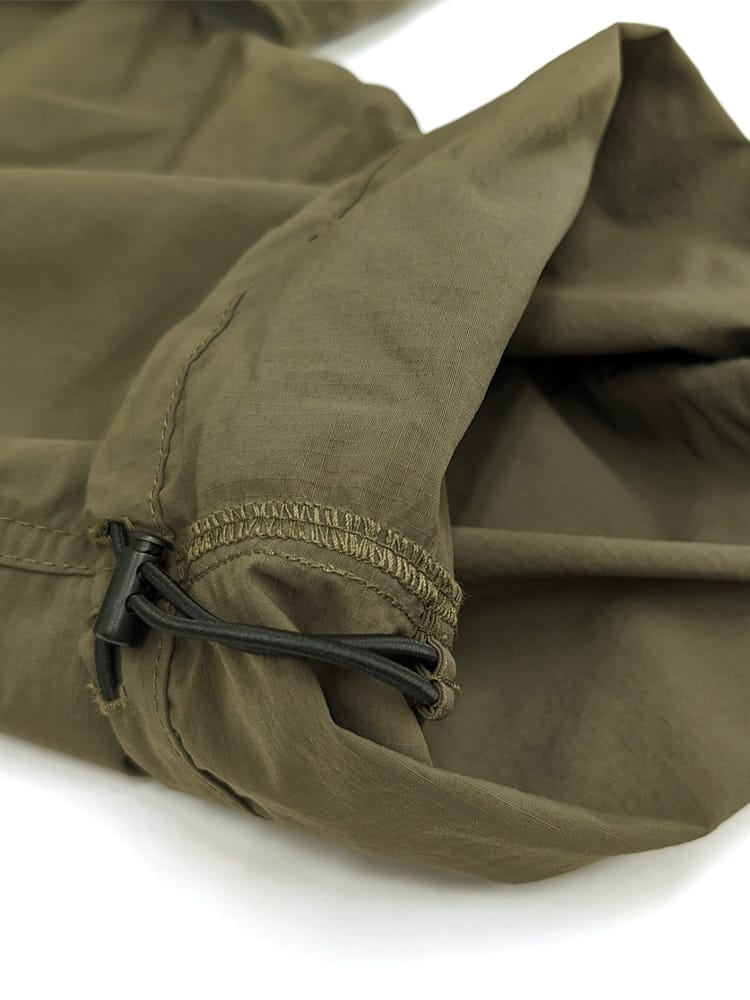仕様 :外側ポケット数×3つ / ウエスト調節ゴム / ジップフライ / 裾ドローコード
