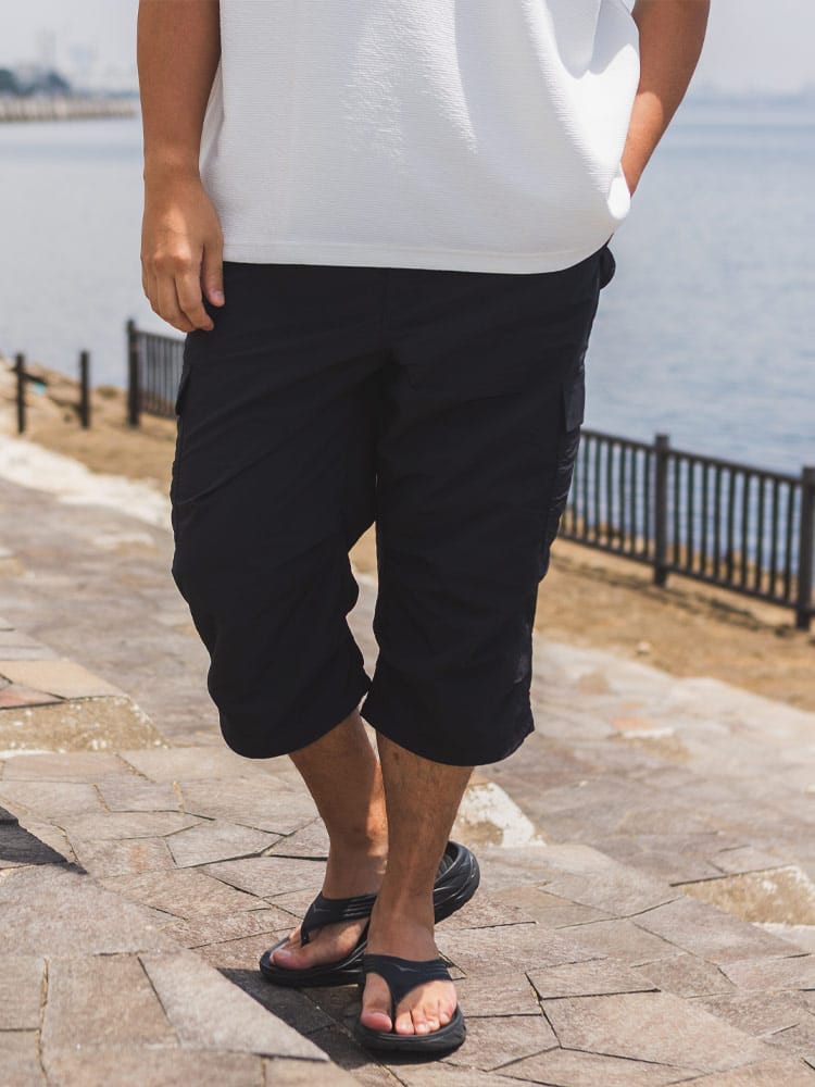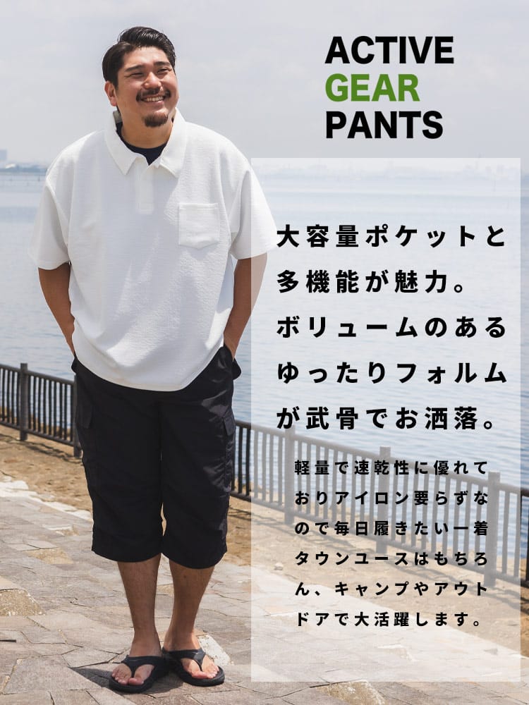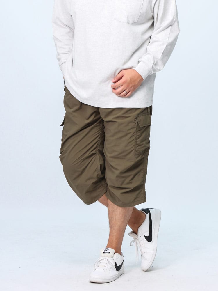 仕様 :外側ポケット数×3つ / ウエスト調節ゴム / ジップフライ / 裾ドローコード