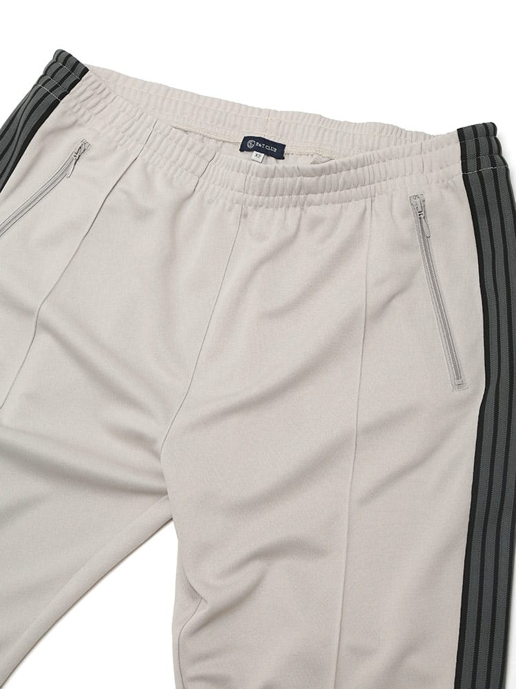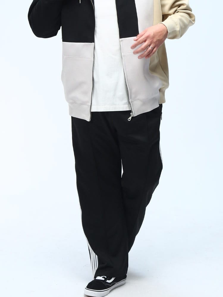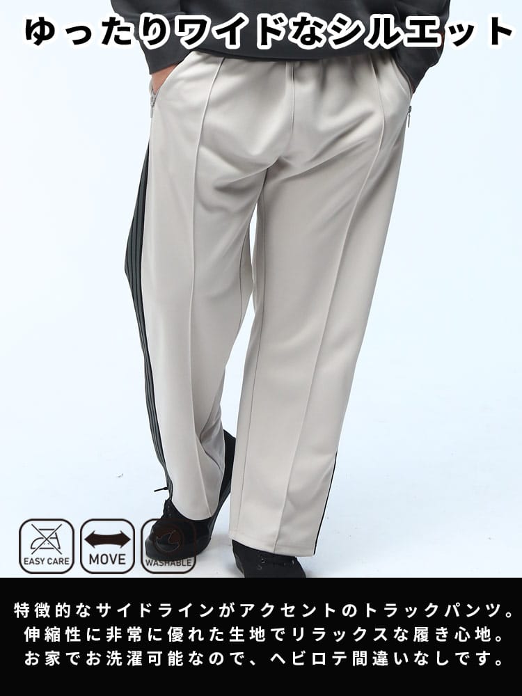 B&T CLUBのサイドライントラックパンツは、スポーティなデザインと快適な穿き心地が魅力のアイテムです。ウエストはゴムとドローコード仕様で、リラックスした履き心地を実現。サイドラインがアクセントとなり、スタイリッシュな印象を与えます。普段使いはもちろん、スポーツシーンにも合わせやすく、幅広いコーディネートが楽しめます。