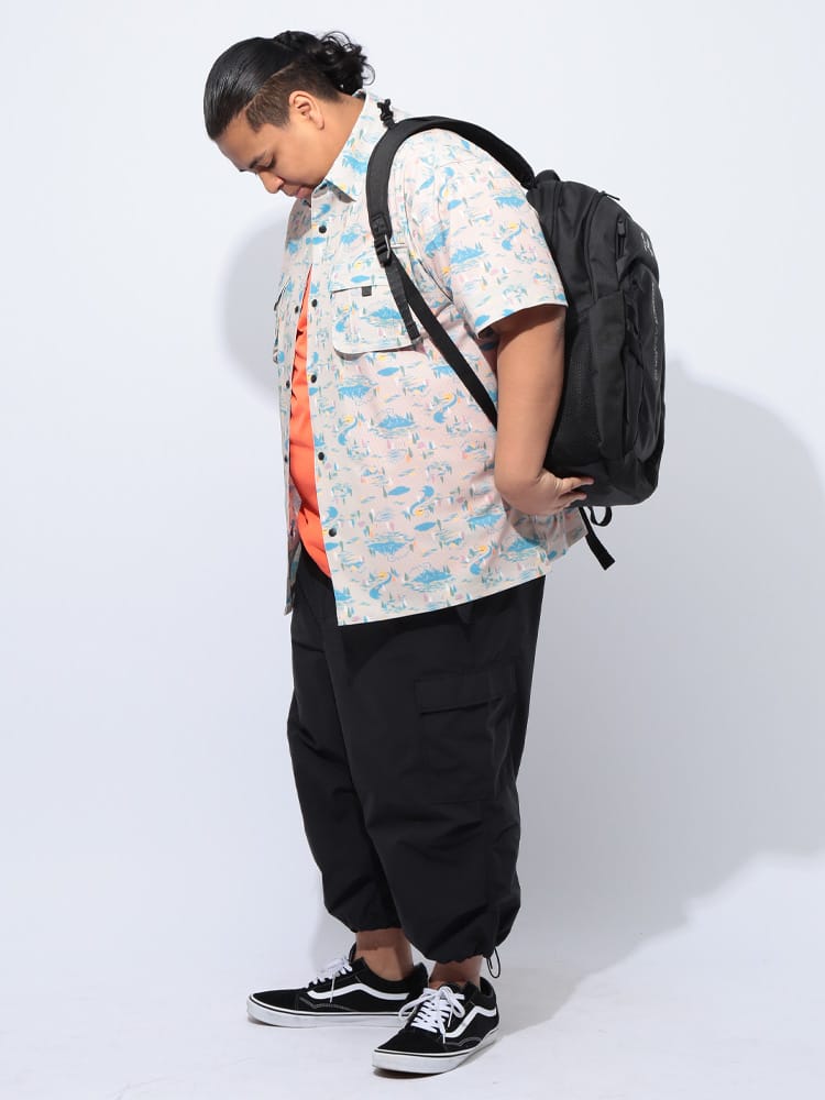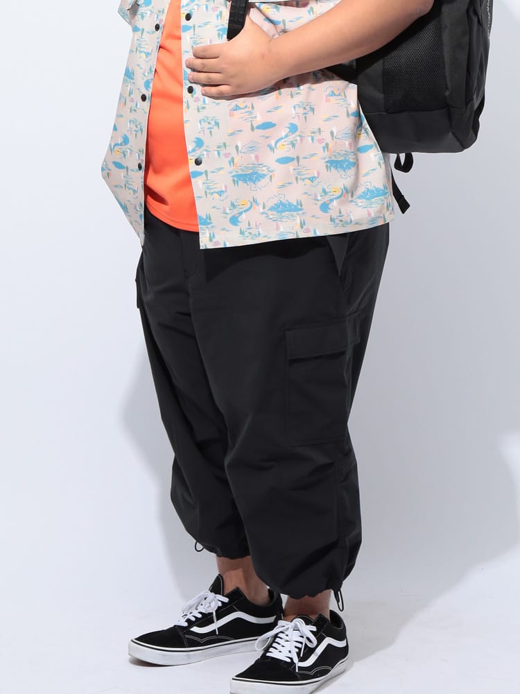 仕様 :外側ポケット数×5つ / ウエスト調節ゴム / ジップフライ / 裾ドローコード