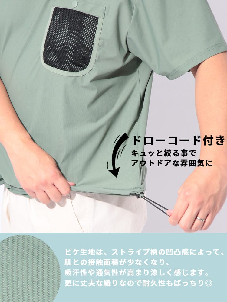 仕様 :冷感 / クルーネック / 外側ポケット数×1つ / 裾ドローコード