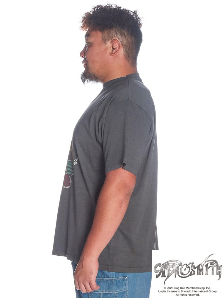 ロック界のレジェンド、AEROSMITHのバンドTシャツが登場! 迫力あるプリントデザインが、コーデに圧倒的な存在感をプラスします。音楽ファンならずとも手に入れたい、まさに「着るアート」のような一枚です。素材は肌触りの良い綿100%で、吸湿性も高く、快適な着心地を実現。ライブやフェスではもちろん、普段使いにも最適です。デニムやレザージャケットと合わせてクールに決めるもよし、カジュアルなスラックスと合わせてハズすもよし、あなたのスタイルに合わせて様々な着こなしを楽しめます。クルーネックでどんなボトムスとも相性が良く、ワードローブの主力になること間違いなし。大きいサイズもご用意しているので、ゆったりとした着こなしでロックテイストを存分にお楽しみいただけます。AEROSMITHのスピリットを身にまとって、日常にロックンロールを!