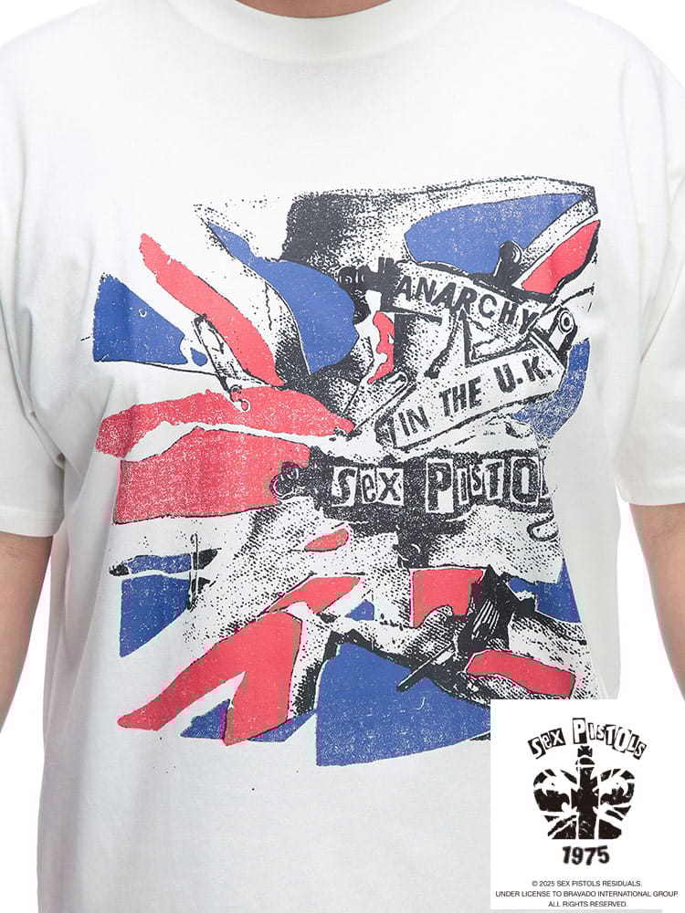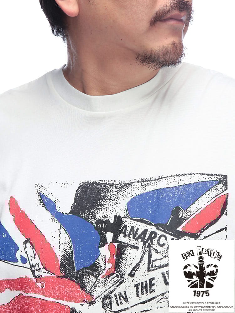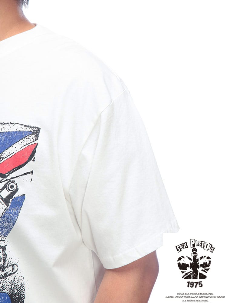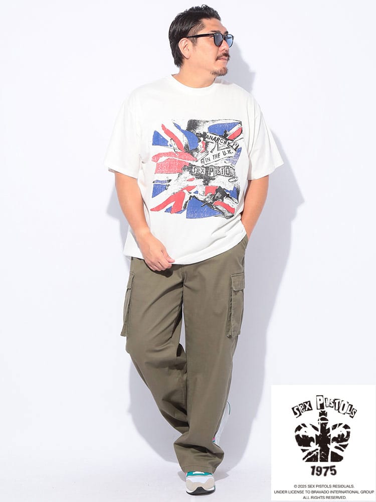 SEX PISTOLS半袖ユニオンジャックイラストプリントTシャツは、パンクロックのカリスマ、セックス・ピストルズのエネルギッシュな世界観を表現した一枚です。大胆に配されたユニオンジャックと、彼ららしい反骨精神を感じさせるイラストが強烈なインパクトを放ちます。これを着れば、あなたもストリートのアイコンに。カジュアルなスタイルにロックなエッセンスを加えたい方や、個性を際立たせたい方におすすめです。
