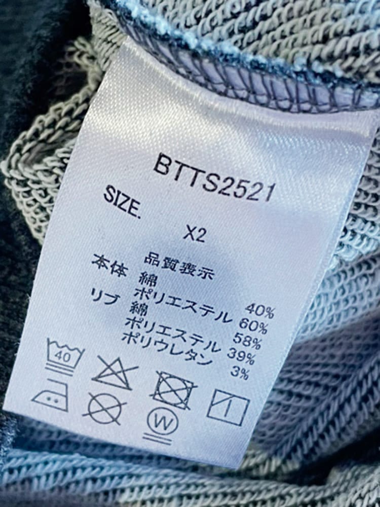 素材 :[本体]ポリエステル60% 綿40% [リブ]綿58% ポリエステル39% ポリウレタン3%