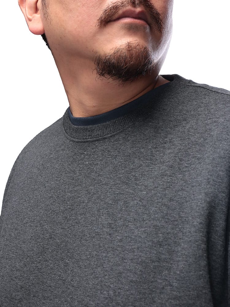 毎日着たくなる、B&T CLUBのクルーネックトレーナーが登場! やわらかな裏毛素材は肌触り抜群で、一日中快適な着心地を約束します。程よい厚みでありながら軽量な仕上がりで、動きやすさも抜群。リブ部分にはストレッチ性のある素材を使用しているため、締め付け感がなく、リラックスして着用いただけます。ダークグレー、ブラック、ネイビーのベーシックな3色展開で、どんなボトムスとも相性ぴったり。シンプルながらも洗練されたデザインは、カジュアルな日常使いはもちろん、ちょっとした外出にも最適です。大きいサイズもご用意しました。この着心地をぜひお試しください。