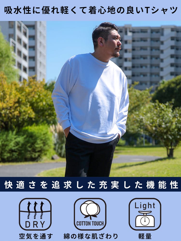毎日着たくなる快適さ! B&T CLUBの「オールマイTシャツ+DRY」は、どんなシーンにもマッチする万能な一枚です。やわらかな肌触りながらも、頼りになるタフな作りで、デイリーユースに最適。さらに、優れた吸水速乾機能が汗ばむ季節もべたつかず、常にドライな着心地をキープします。程よい軽量感とストレッチ性も兼ね備えているため、動きやすくストレスフリーです。クルーネックのシンプルなデザインは、一枚でさらりと着ても、シャツやジャケットのインナーとしても活躍します。大きいサイズもご用意しました。快適な着心地と頼れる機能性で、あなたのワードローブの定番になること間違いなしです。