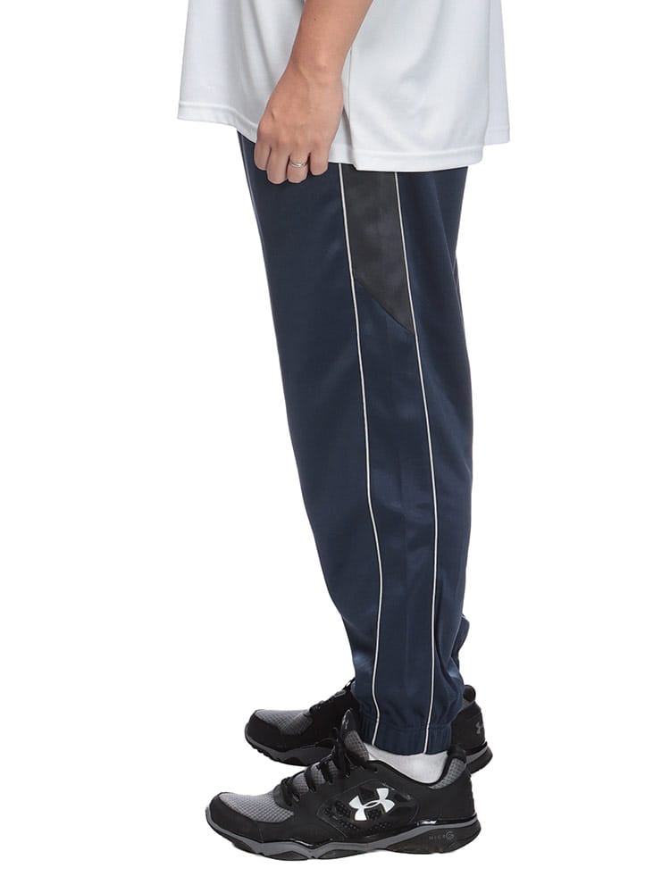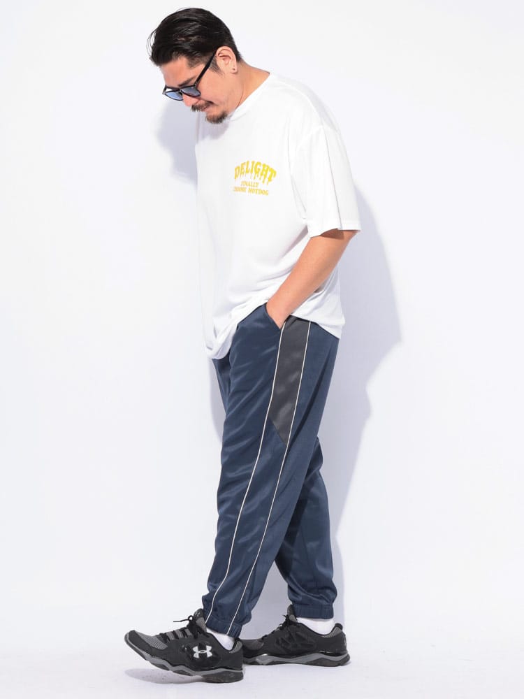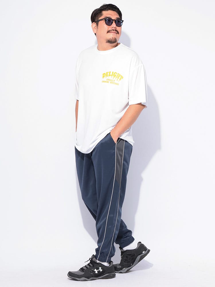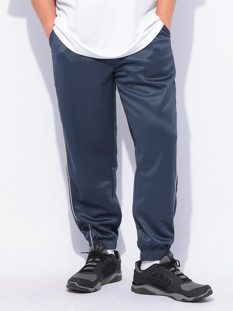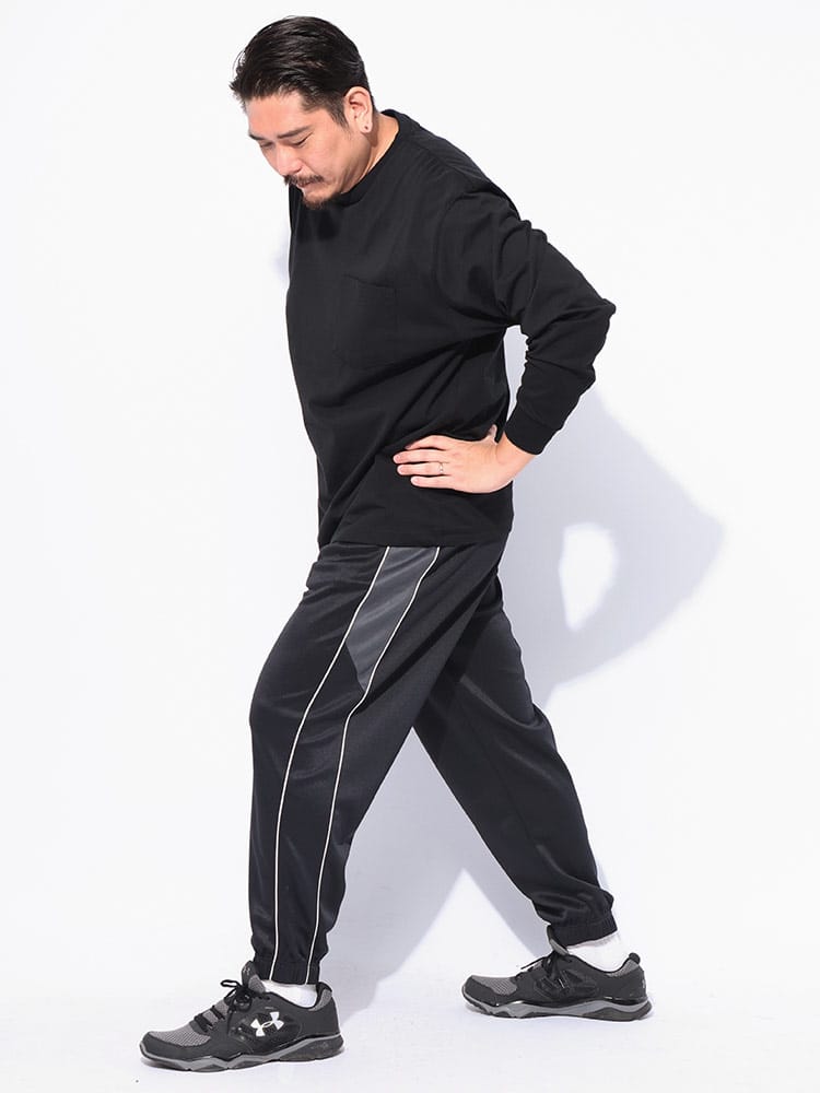快適さとスタイルを両立する高機能ボトムス。アクティブな日常を送る大人の男性へ。吸水速乾機能で汗をかいてもすぐに乾き、常にサラッとした快適な肌触りをキープ。さらに、抗菌防臭加工が施されているため、気になるニオイも軽減し、いつでも清潔に着用いただけます。ポリエステル100%素材なので、軽量で動きやすく、スポーツやトレーニング、リラックスタイムなど、あらゆるシーンで活躍します。外側には2つのポケットが付いており、スマートフォンや鍵などの小物をスマートに収納可能。ウエストは調節可能なゴム仕様で、締め付け感なく快適にフィットします。前閉じ仕様なので、見た目もすっきり。サイドにあしらわれたラインデザインが、スポーティながらも洗練された印象を与え、裾リブ仕様が足元をすっきりと見せてくれます。