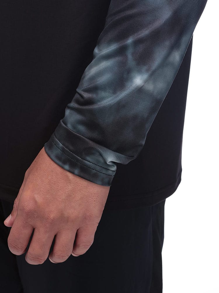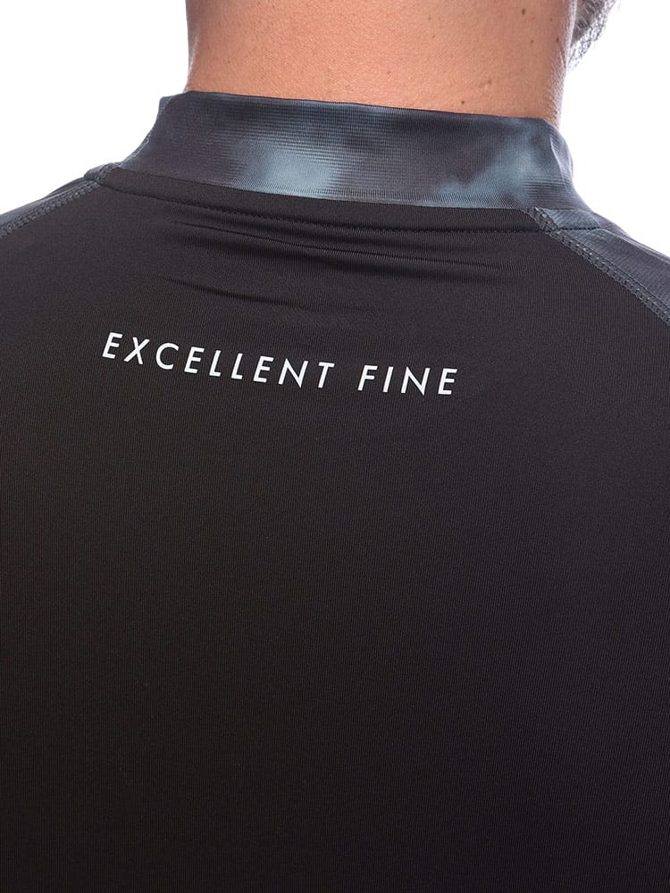 伸縮性に優れたベア天竺素材が身体に吸い付くようなフィット感を実現。