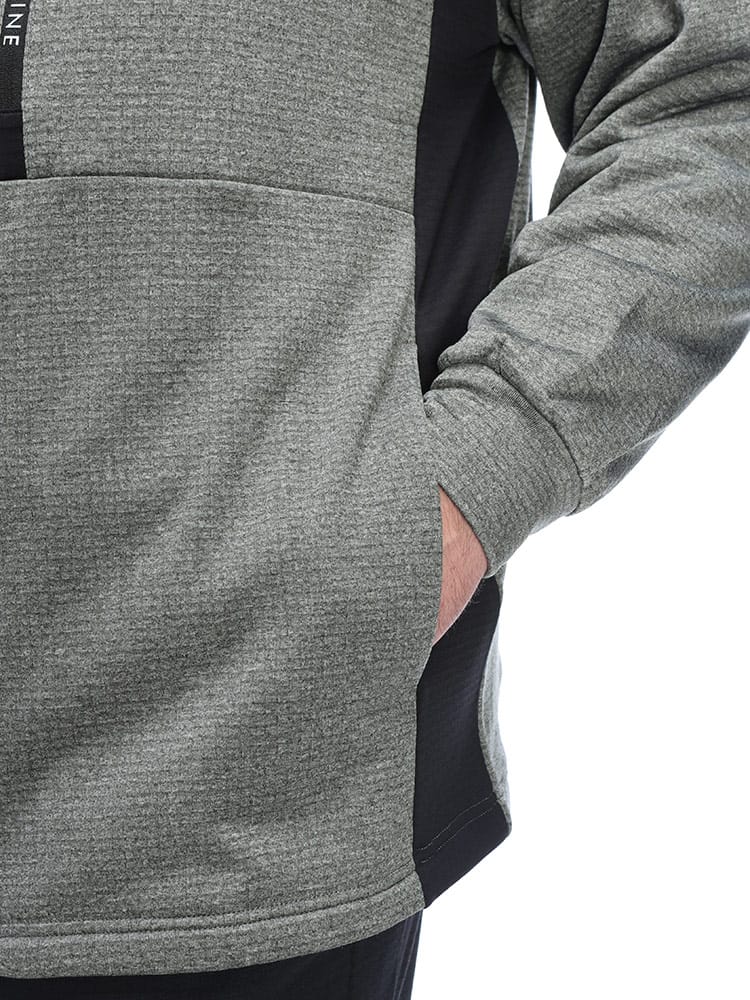 肌寒い季節のアクティブシーンに最適な、軽くて動きやすいストレッチ素材を採用。さらに、裏地にはブロックフリースを使用し、優れた保温性を発揮しながらも、通気性を確保することで蒸れにくく、快適な着心地を一日中キープします。スタンドカラーのデザインは、首元からの冷気の侵入を防ぎ、スポーティーでありながら洗練された印象を与えます。両サイドのポケットに加え、胸元にもファスナー付きポケットを装備しており、スマートフォンや鍵などの小物の収納にも困りません。スポーツやトレーニングにはもちろん、ちょっとした外出にも気軽に羽織れる汎用性の高さも魅力。暖かさと機能性を両立したこのブルゾンで、秋冬のアクティブライフをさらに豊かにしませんか。