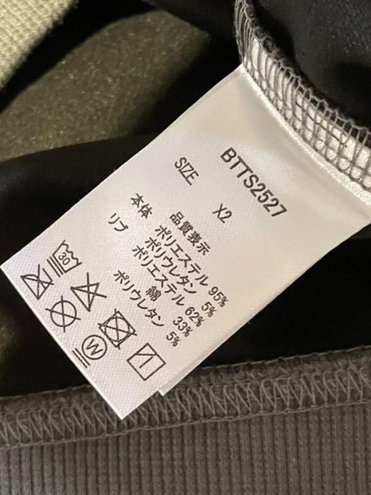 素材 :[本体]ポリエステル95% ポリウレタン5% [リブ部分]ポリエステル62% 綿33% ポリウレタン5%