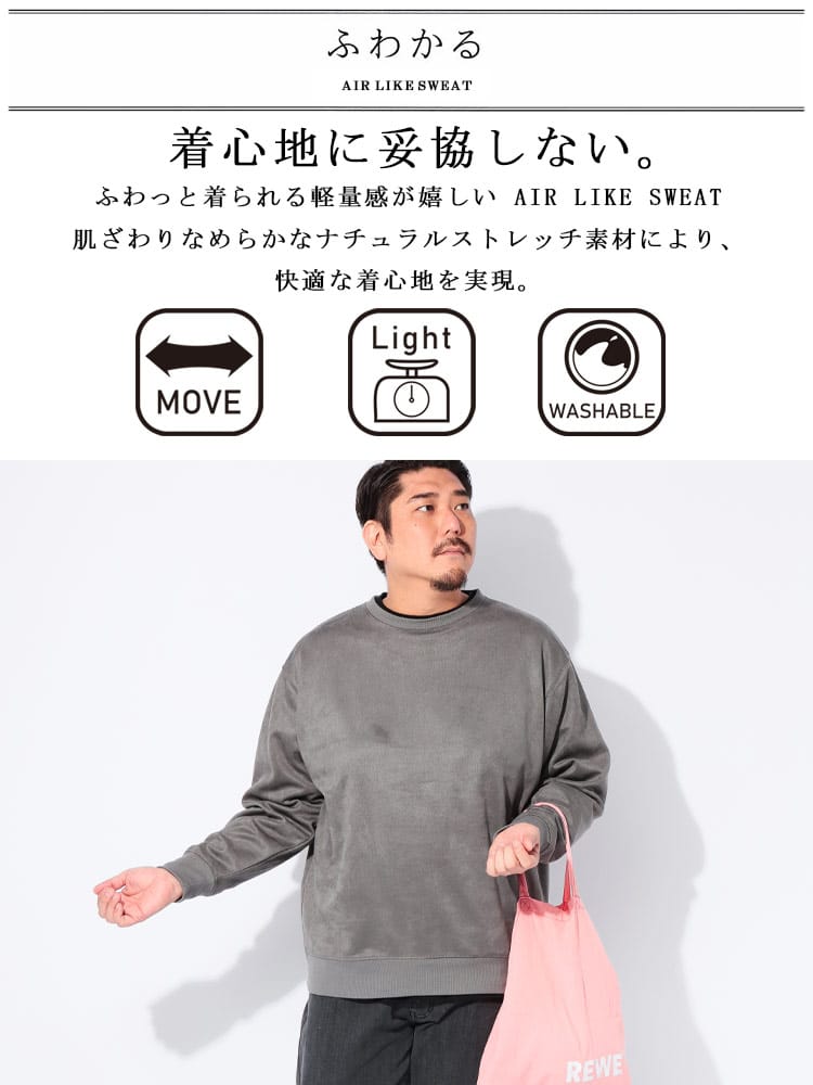 ふわかるブラッシュドスウェットトレーナーは、その名の通り「ふわかる」な着心地が魅力の一枚です。驚くほどの軽量素材で長時間着用しても疲れにくく、さらに優れたストレッチ性でどんな動きも妨げません。肌触りの良いブラッシュド加工が施されており、快適さも抜群。普段使いはもちろん、お部屋でのリラックスタイムや、ちょっとしたお出かけにも最適です。