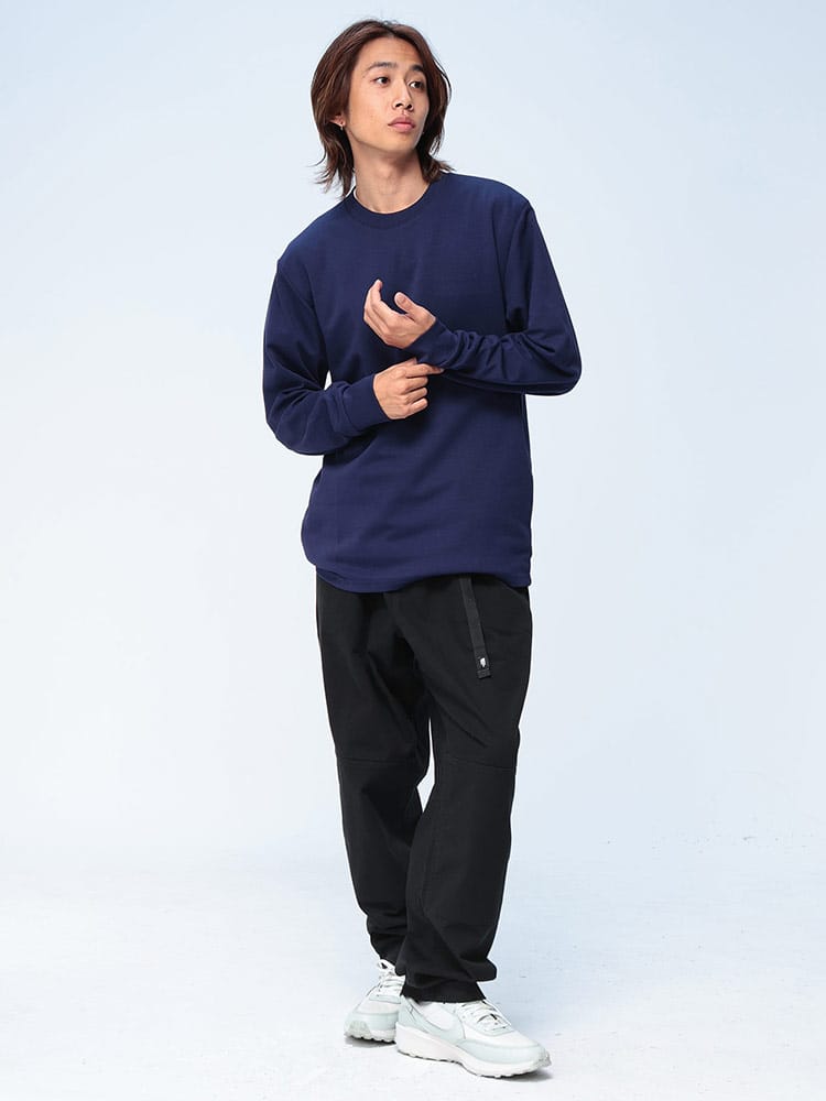 毎日着たい快適なベーシックを追求した、S&SONS(エスアンドサンズ)の+DRY長袖Tシャツ。このアイテムの秘密は、プレーティング編みが生み出す機能性と上質さの融合です。肌に触れる裏面は吸水速乾に優れたポリエステル、表面はナチュラルな綿(コットン)タッチ。この二層構造により、ドライな着心地を保ちながらも、カジュアルで品の良い質感を実現しました。綿50%・ポリエステル50%の黄金比ブレンドは、軽量でストレスフリー。汗をかいてもすぐに乾く+DRY機能で、春から秋、そして冬のインナーまで、オールシーズン活躍します。クルーネックのシンプルなデザインは、どんなコーディネートにも自然に溶け込み、着こなしのベースアイテムとして重宝すること間違いなし!何枚あっても困らない新定番です。