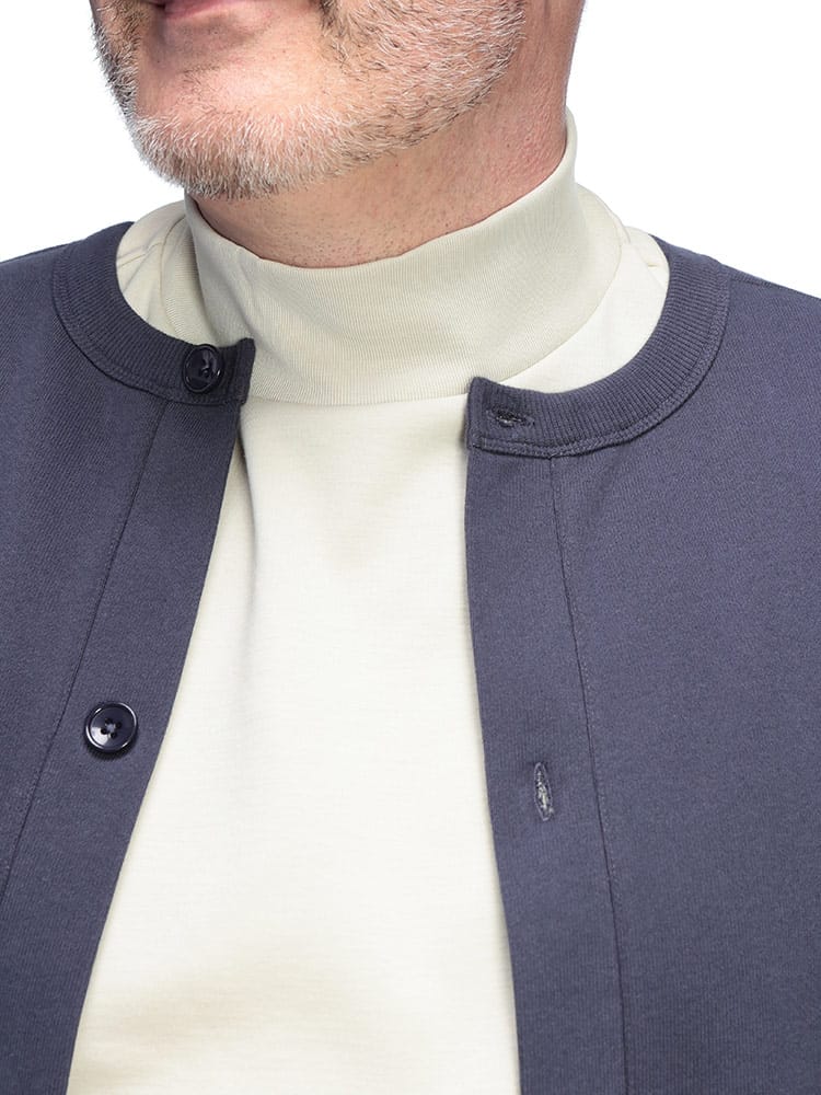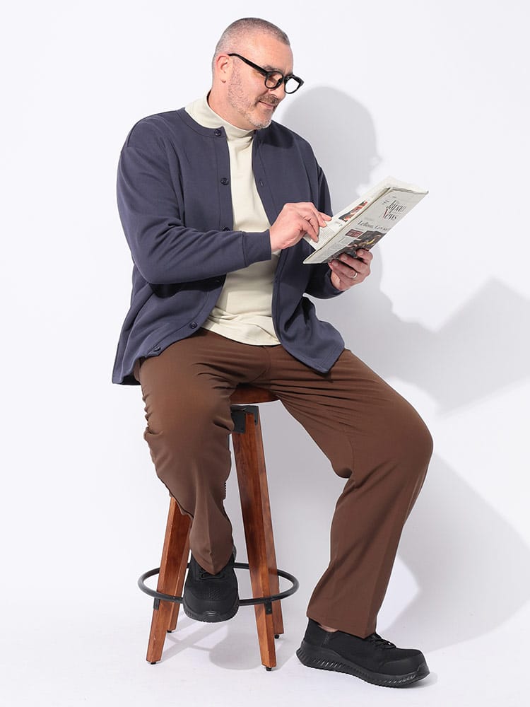 季節の変わり目に欠かせないWフェイス クルーネックカーディガンのご紹介です。これ一枚あれば、Tシャツやシャツの上からさらりと羽織るだけで、着こなしがぐっとおしゃれに決まります。このカーディガンの最大の魅力は、その独特なWフェイス素材。表地は柔らかなコットンブレンド、裏地はなめらかなポリエステル素材を使用しており、肌触りの良さと軽い着心地を両立しています。シンプルなクルーネックのデザインは、どんなインナーとも合わせやすく、コーディネートの幅を広げてくれます。両サイドにはポケットが付いており、機能性も兼ね備えているのが嬉しいポイント。スマートフォンや鍵などをちょっと入れたい時にも便利です。春や秋はメインのアウターとして、冬はコートのインナーとして、長いシーズン活躍します。このカーディガンで、毎日のスタイリングをアップデートできます。