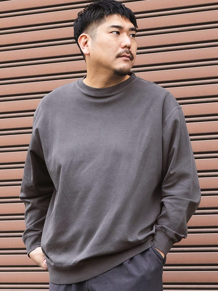 味わい深いピグメント加工がこなれ感を演出する、B&T CLUBのクルーネックトレーナーです。滑らかでハリのあるポンチ素材を使用することで、ヴィンテージライクな表情の中に上品さをプラスしました。シワになりにくく、ストレッチの効いた快適な着心地も魅力。シンプルな無地デザインなので使い勝手が良く、一枚着としてはもちろん、ジャケットのインナーなど幅広いコーディネートで活躍する大人のための一着です。