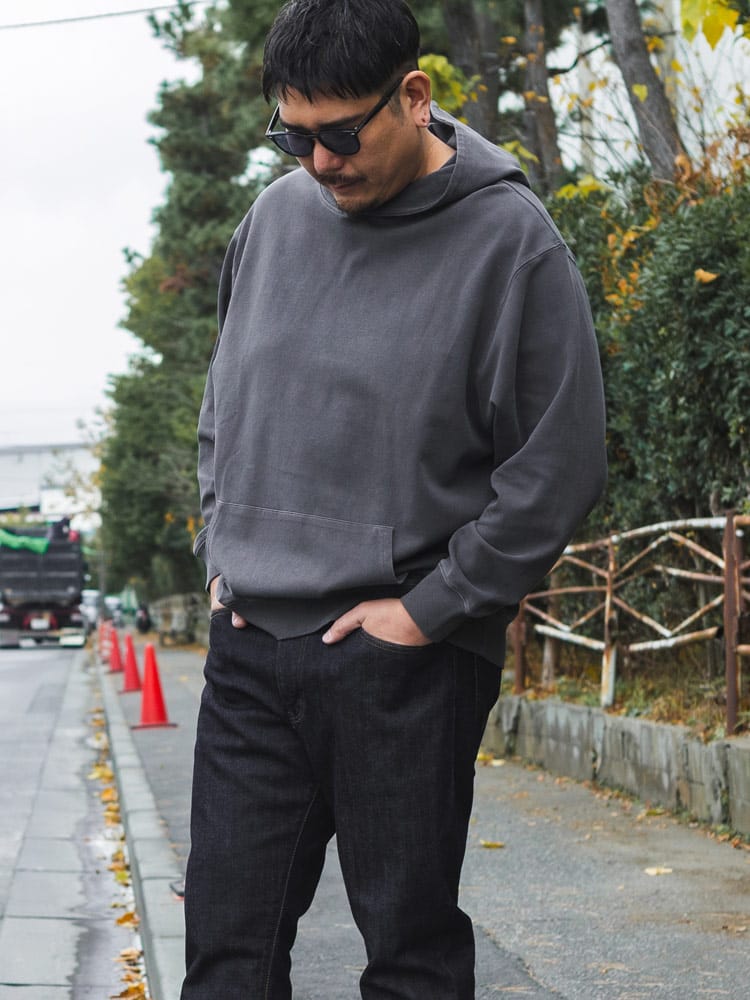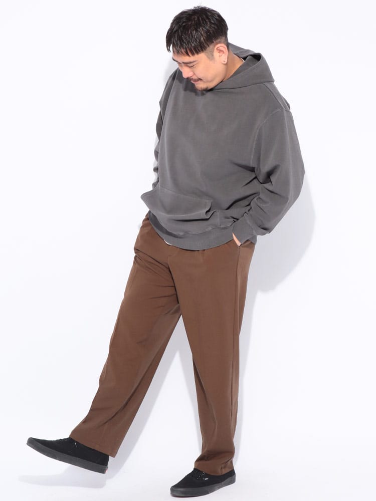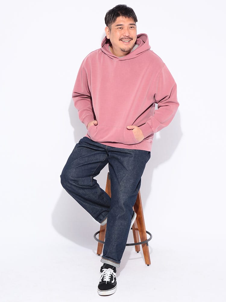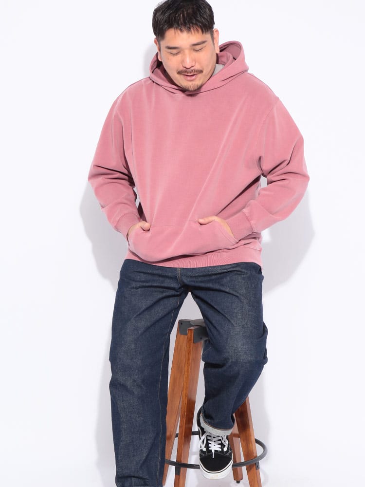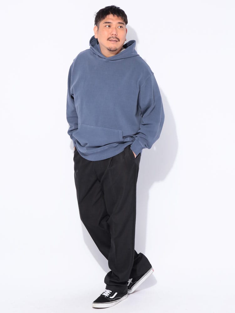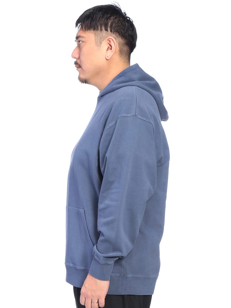 ヴィンテージ風の色合いが魅力のピグメント加工を施した、B&T CLUBのプルオーバーパーカーです。滑らかでハリのあるポンチ素材を採用し、ラフな風合いの中に上品さを両立させました。伸縮性に優れシワになりにくく、着心地も快適。立体感のあるフードが顔周りのアクセントになります。シンプルな無地で合わせやすく、大人のカジュアルコーデを格上げする一着です。